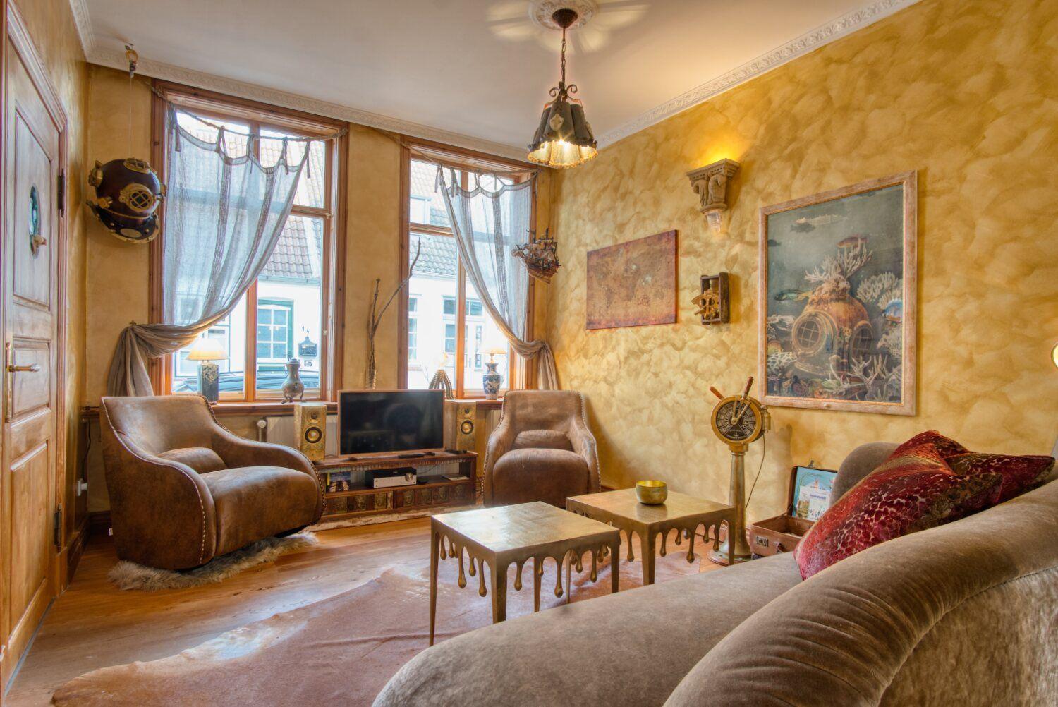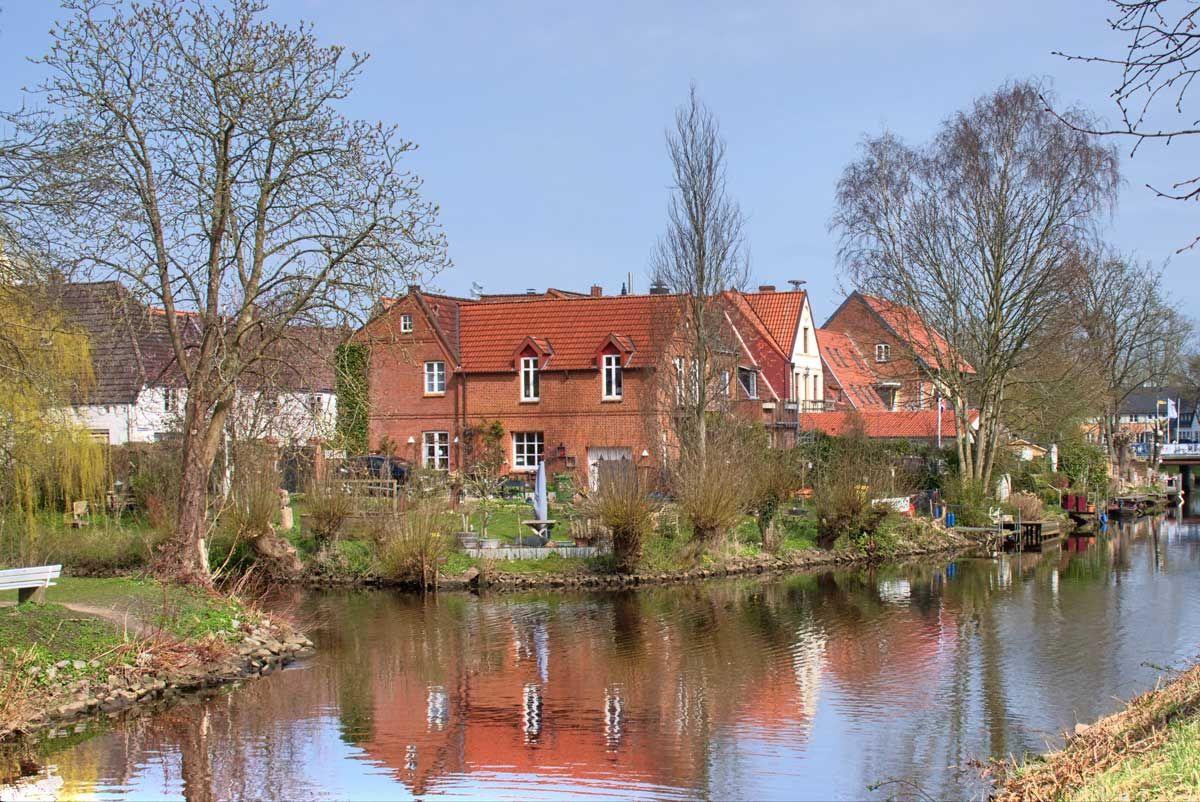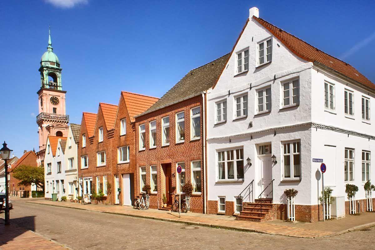 Brücken, windschiefe Giebelhäuser und Backsteinbauten prägen das Stadtbild. Friedrichstadt, auch Kleinamsterdam oder das nordfriesische Venedig genannt, gilt seit jeher als Stadt der Toleranz: Im Laufe der Jahrhunderte fanden hier verschiedene Glaubensgemeinschaften ihren Platz, davon zeugen heute noch fünf Gotteshäuser, eines davon, die Remonstrantenkirche, ist von diesem Ferienhaus aus zu sehen.