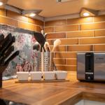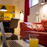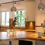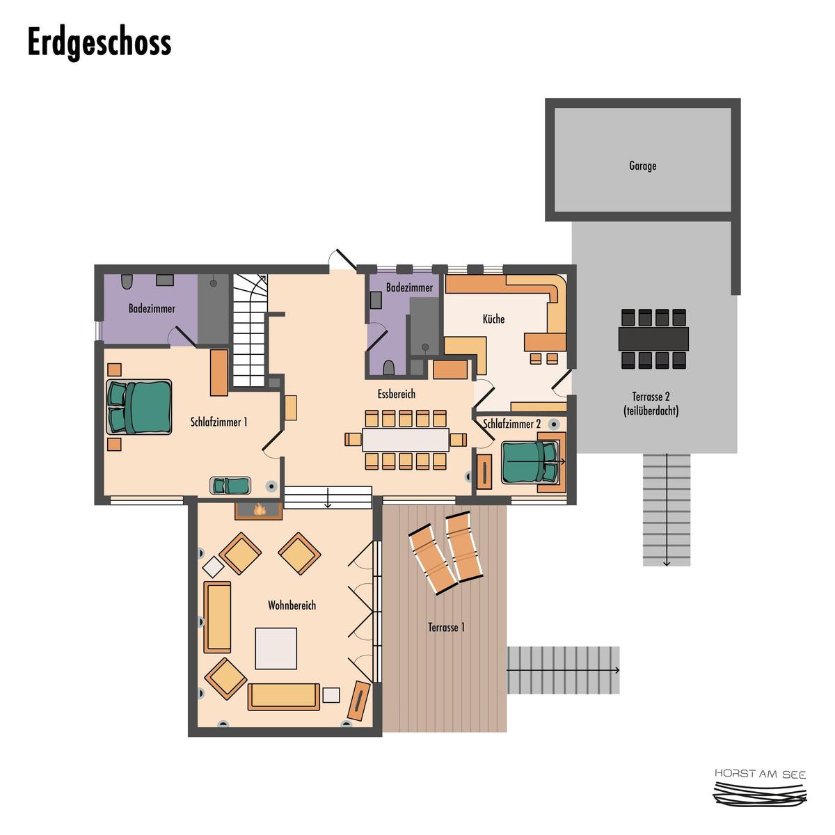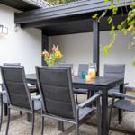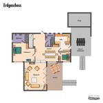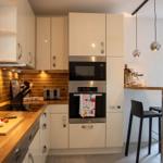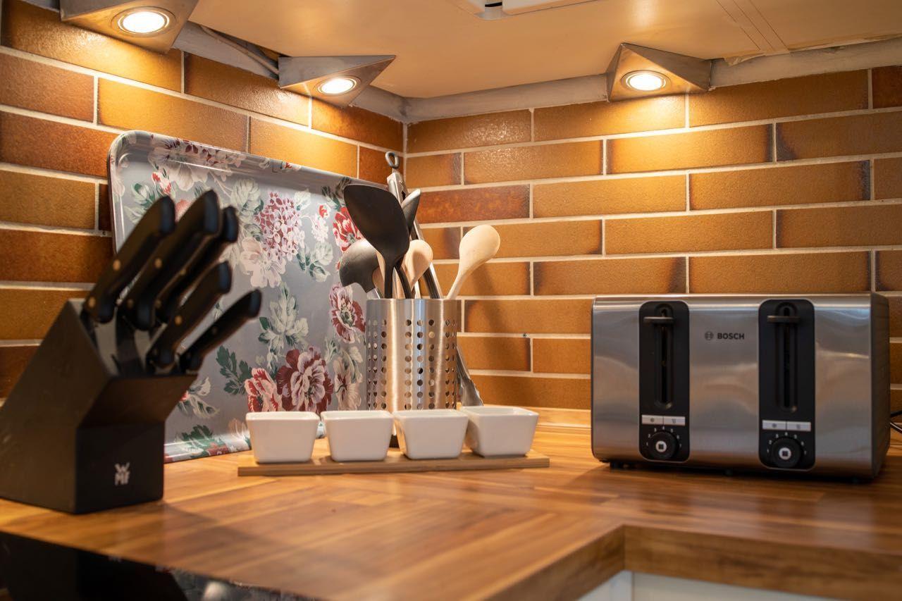 Die separate Küche ist umfassend ausgestattet mit einem Geschirrspüler, einem Elektro-/Gasherd, einem Backofen, einer Mikrowelle und einem Kühlschrank, ergänzt durch eine Kaffeemaschine, einen Toaster und eine Gefriermöglichkeit. Ein Esstisch lädt zu gemeinsamen Mahlzeiten ein. Die gemütlichen Wohnräume, ausgestattet mit einem Sofa und Sessel, bieten Platz für Entspannung und gesellige Spieleabende.