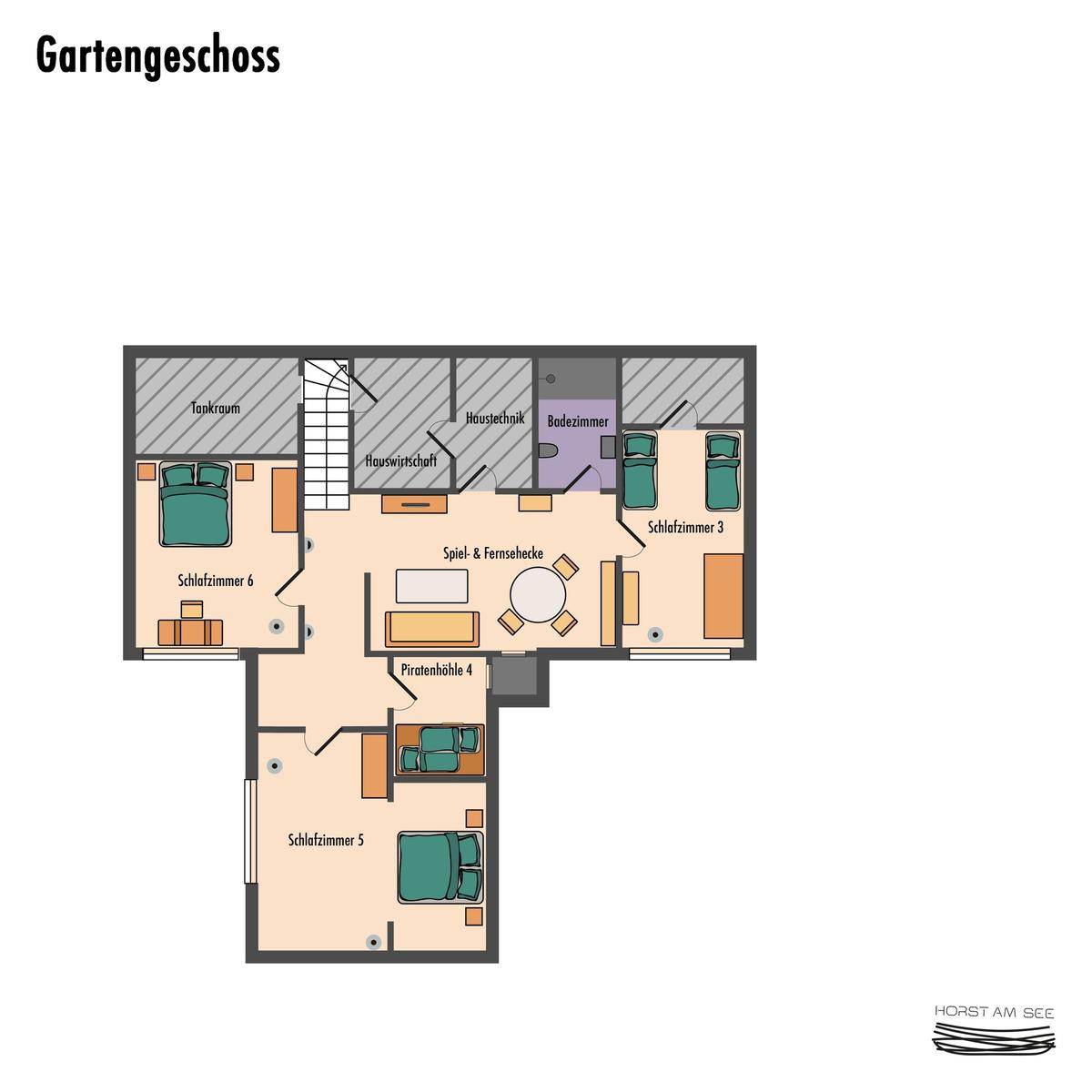 Diese großzügige Ferienwohnung bietet eine ideale Unterkunft für Familien oder Gruppen und überzeugt durch ihre umfangreiche Ausstattung. Sie verfügt über sechs Schlafzimmer, darunter drei Doppelbetten, fünf Einzelbetten und zwei Kinderbetten, die für einen erholsamen Schlaf sorgen.
