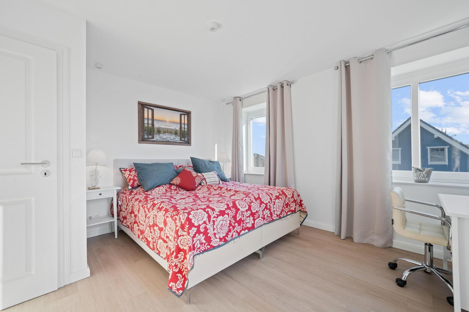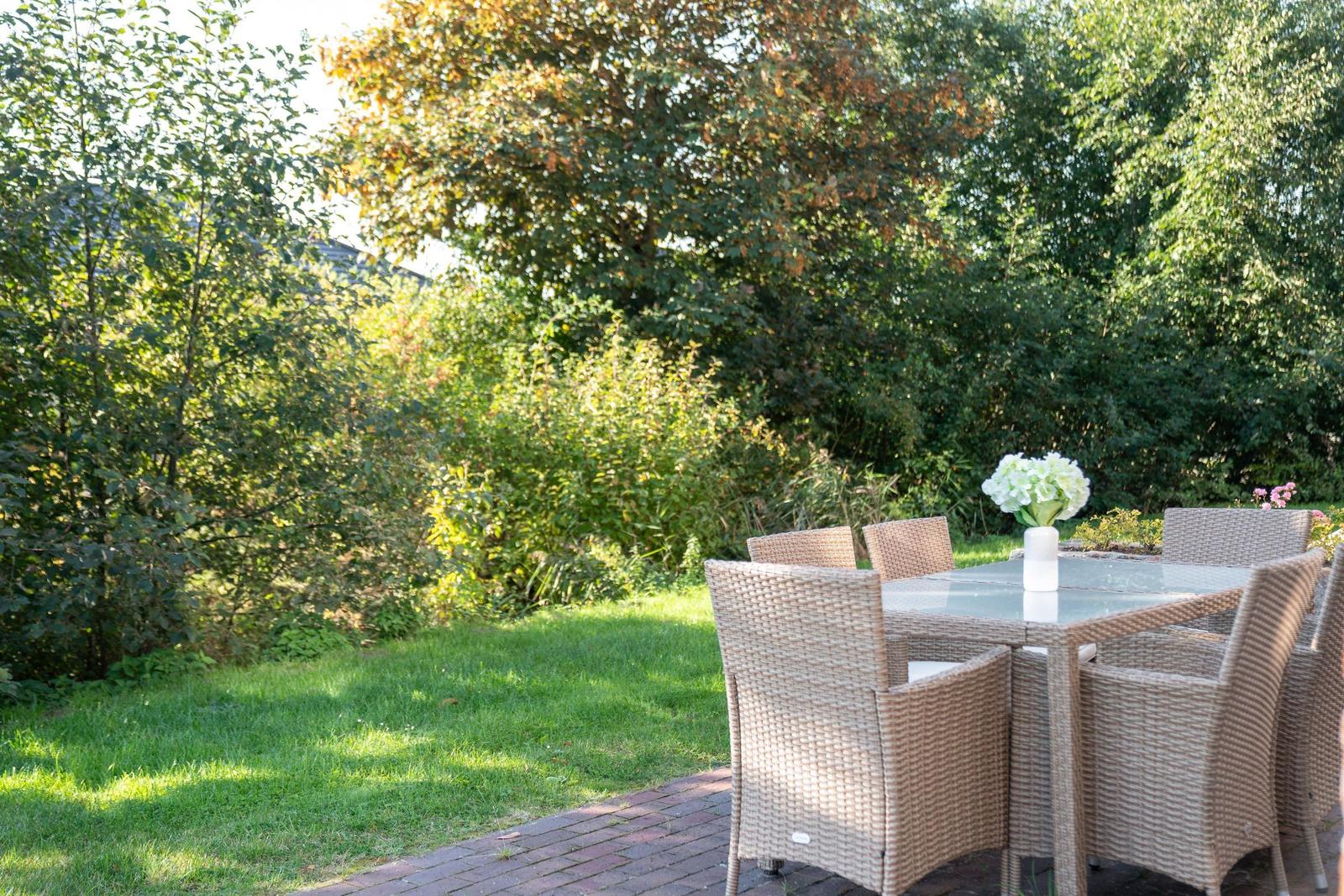 Das Haus Friesentraum in Garding bietet einen einladenden Außenbereich, der zur Entspannung und Geselligkeit einlädt. Eine überdachte Terrasse mit Grill ermöglicht gemütliche Abende im Freien. Der großzügige Garten mit Liegewiese, Gartenmöbeln und einem eigenen Strandkorb schafft eine perfekte Atmosphäre für erholsame Stunden an der frischen Nordseeluft. Gäste können zudem einen entspannenden Balkon nutzen, der einen Blick ins Grüne bietet. Für den Komfort der Gäste steht ein privater, kostenfreier Parkplatz direkt am Haus zur Verfügung. Der Außenbereich ist ideal für Familien und Haustiere, die gemeinsam ihren Urlaub genießen möchten. Das Haus liegt in ruhiger Dorflage und ist nur 10 Minuten von den beeindruckenden Sandstränden und der Dünenlandschaft von St. Peter-Ording entfernt.