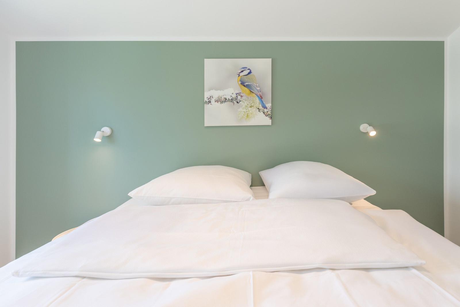 Die Ferienwohnung bietet großzügigen Platz und moderne Ausstattung für einen entspannten Aufenthalt. Mit drei Schlafzimmern, ausgestattet mit jeweils einem Doppelbett, finden bis zu sechs Personen komfortabel Platz. Für zusätzlichen Komfort sorgen zwei Badezimmer, eines mit bodengleicher Dusche und Fenster, sowie ein Gäste-WC.