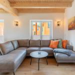Die Wohnräume sind hell und einladend, mit einem Sofa, Sessel und Fußbodenheizung. Für Familien stehen ein Kinderhochstuhl und ein Kindertoilettensitz bereit. Sicherheit wird durch Rauchmelder, Treppenschutz und Garderobe gewährleistet. Ein Parkplatz ist ebenfalls vorhanden und Fliegengitter sorgen für zusätzlichen Komfort.