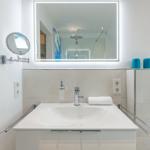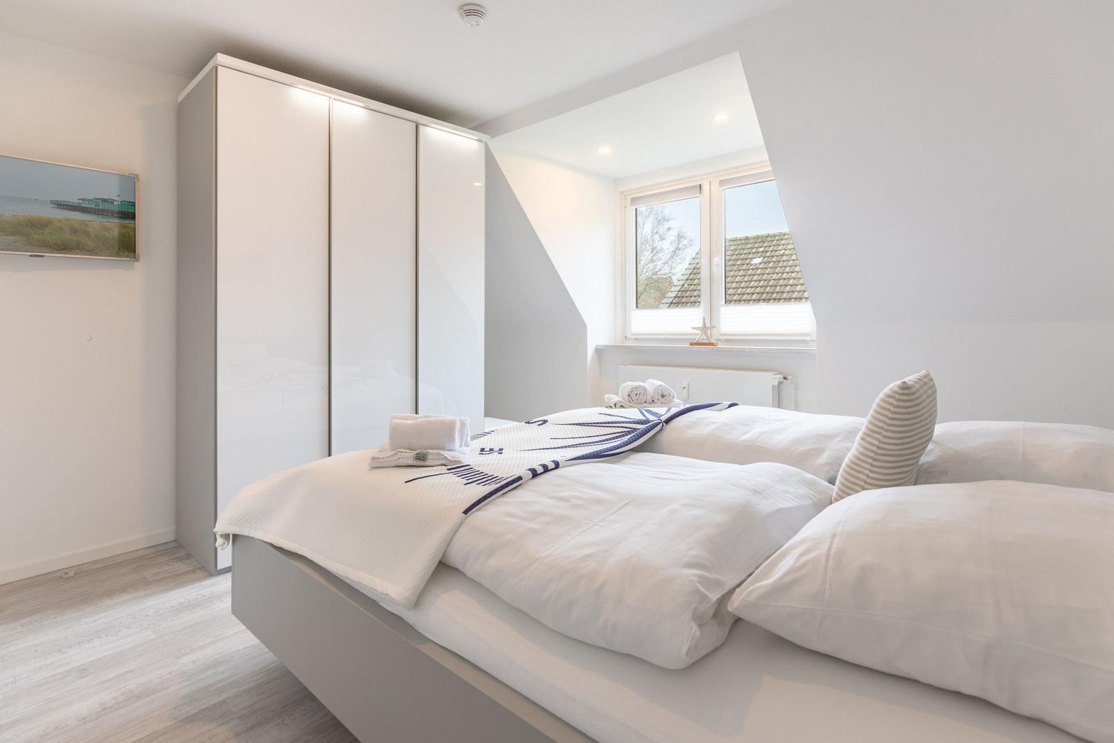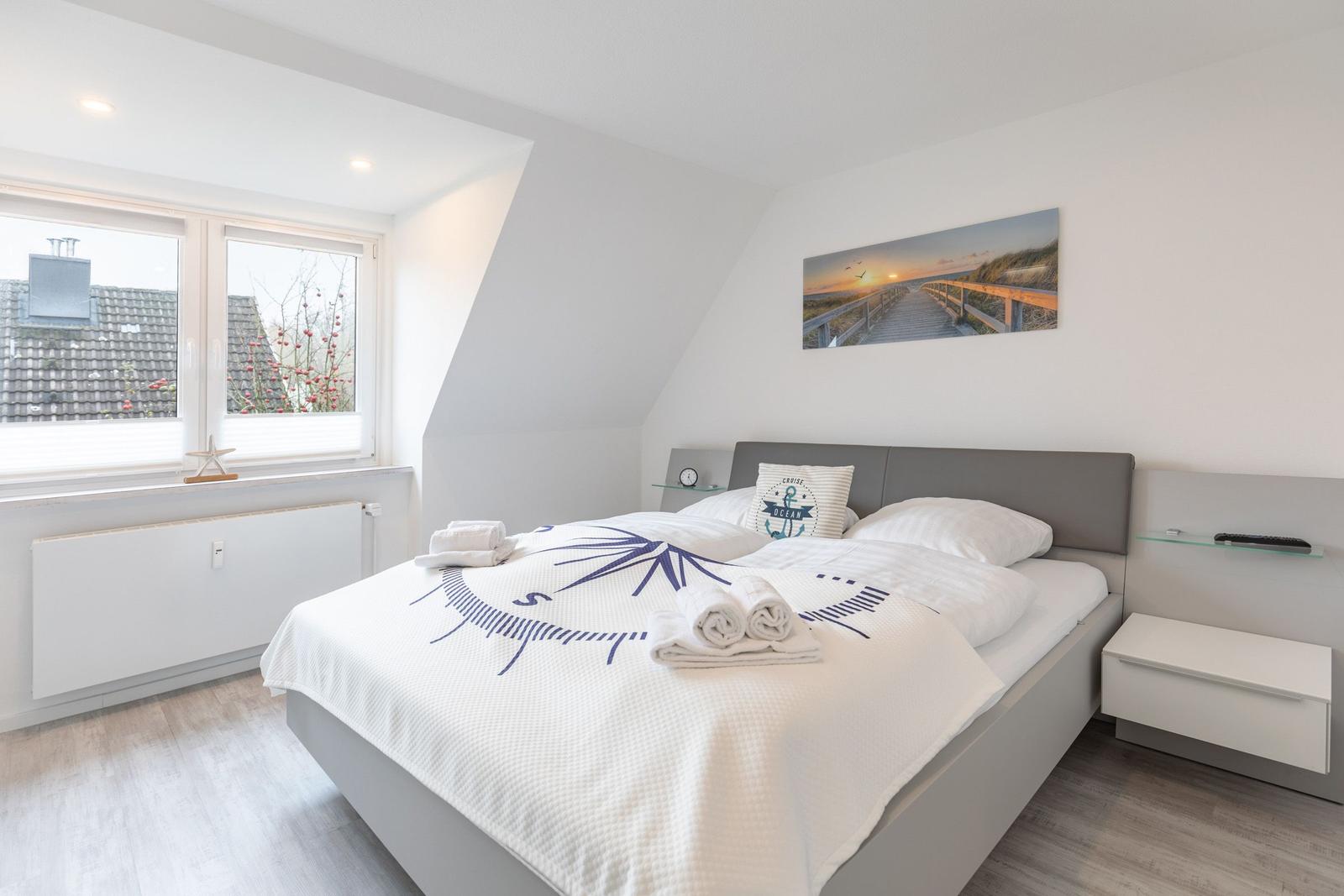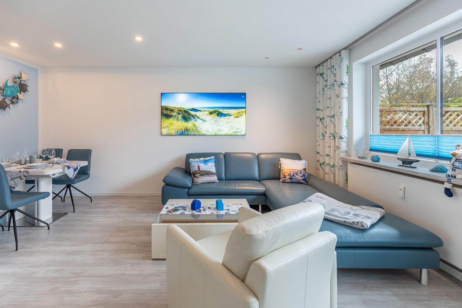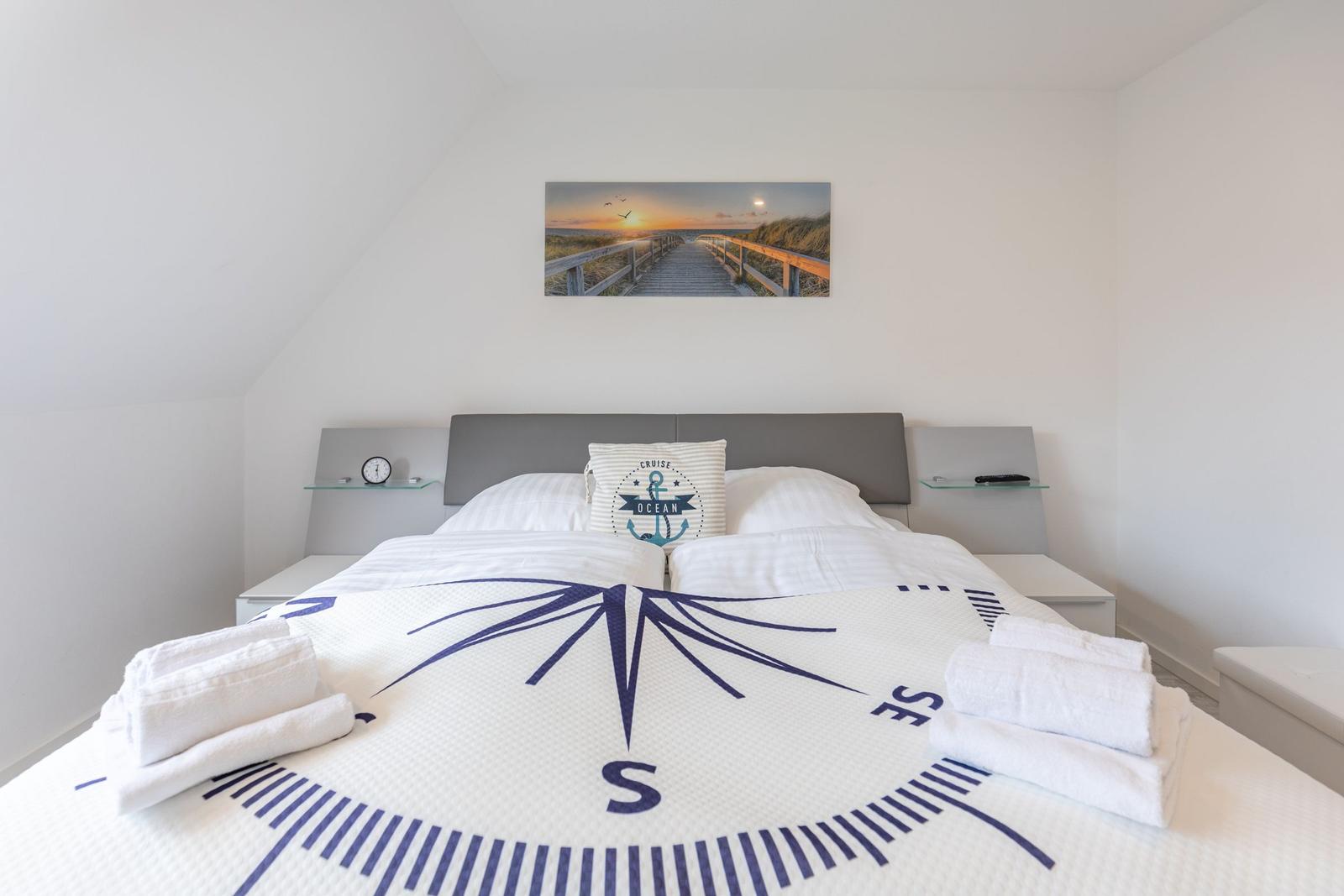 Das Ferienhaus Bellaeins in Tönning erstreckt sich über 75 m² und bietet modernen Komfort für bis zu vier Personen auf zwei Etagen. Es verfügt über zwei gemütliche Schlafzimmer mit Doppelbetten und Fernseher, ideal für Familien oder Paare. Der einladende Wohnbereich ist mit bequemem Sofa, Sessel, SAT-Fernseher und einer HiFi-Anlage ausgestattet. Die voll ausgestattete, geschlossene Küche ermöglicht die Zubereitung von Mahlzeiten und schließt einen angrenzenden Essbereich ein. Das helle Badezimmer im ersten Obergeschoss bietet Dusche, WC und Waschtisch. Zusätzlich sorgt ein Gäste-WC für erhöhten Komfort. Zur Ausstattung gehören Fußbodenheizung, WLAN sowie praktische Haushaltsgeräte wie Waschmaschine und Trockner. Ein Safe und Rauchmelder erhöhen die Sicherheit. Das Nichtraucherhaus vereint hochwertige Materialien und moderne Technik für einen angenehmen Aufenthalt.