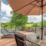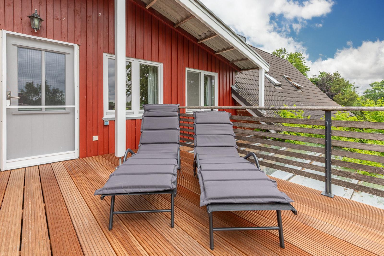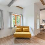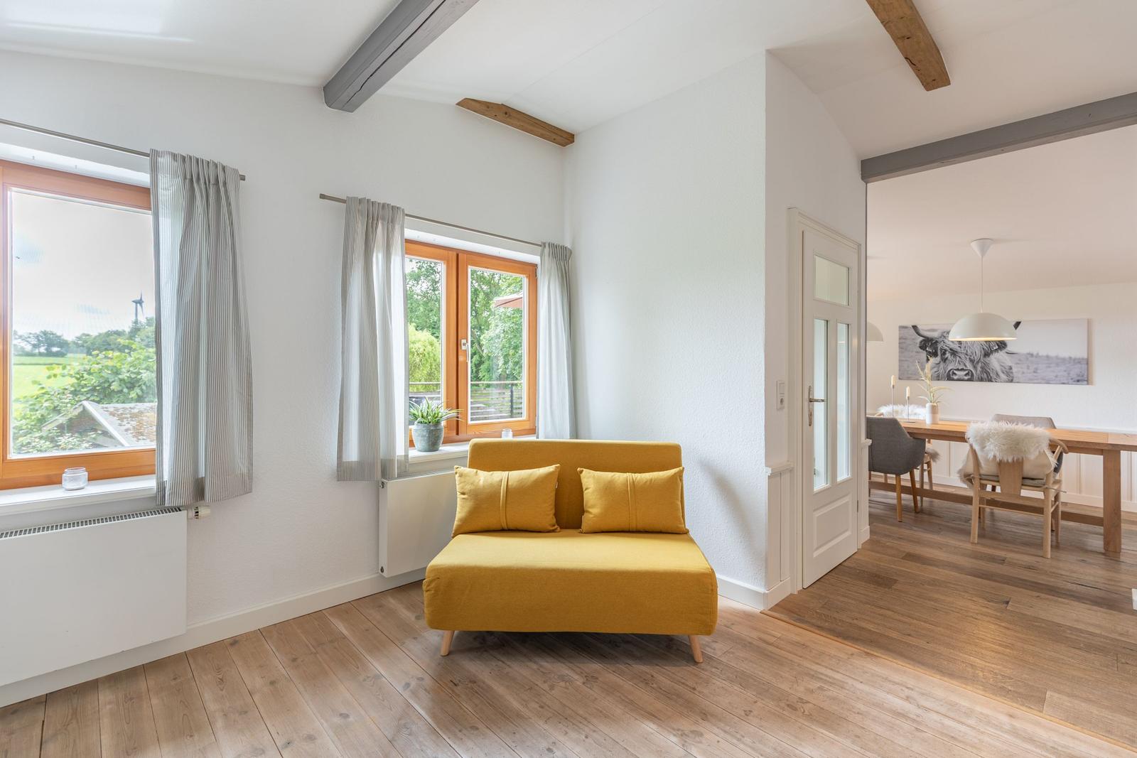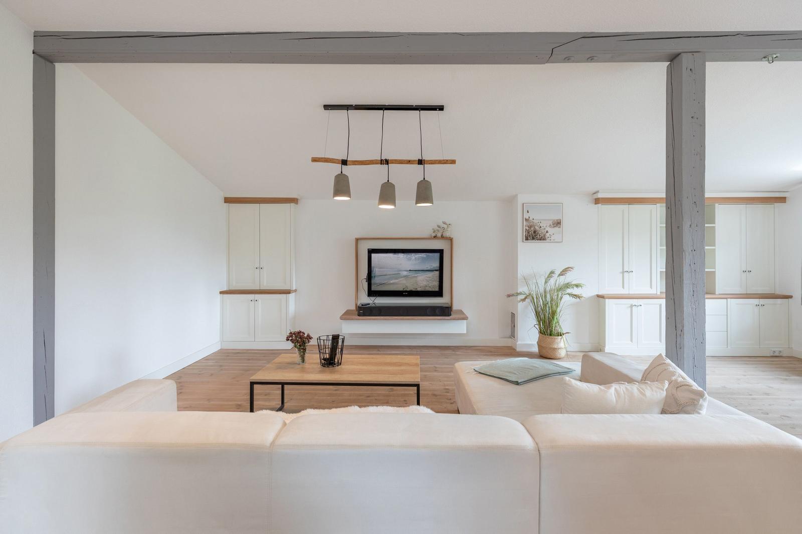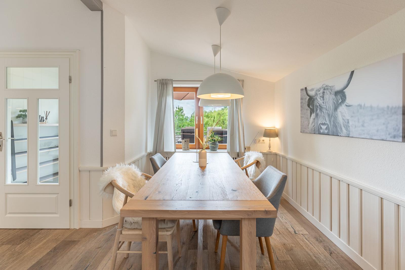 Für zusätzlichen Komfort sorgt die Klimaanlage und die WLAN-Verbindung mit 100 MBit/s. Das Wohnzimmer bietet Platz zum Entspannen mit einem Sofa, einem Sessel und einer HiFi-Anlage. Ein Esstisch ermöglicht gesellige Mahlzeiten.