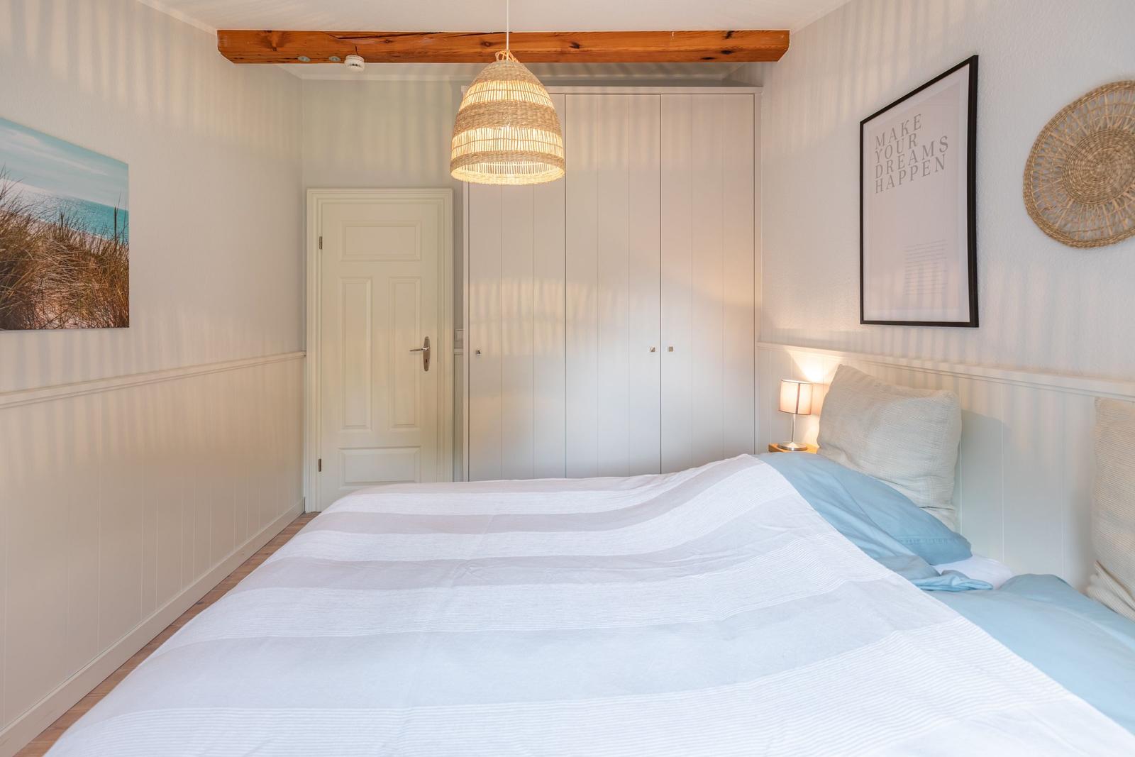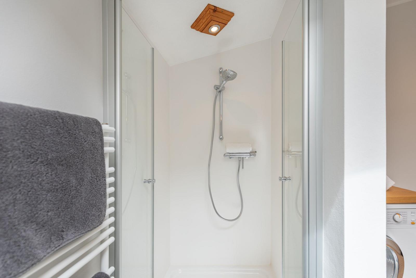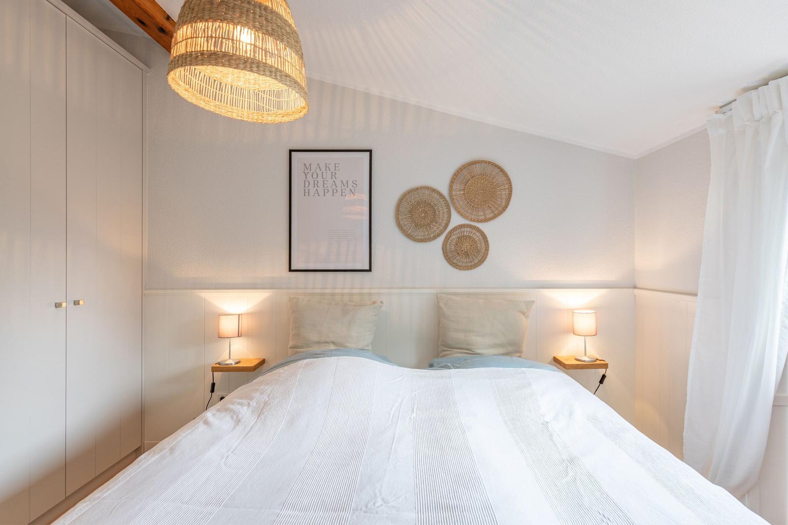 Diese Ferienwohnung bietet einen komfortablen Rückzugsort für Erholungssuchende. Sie umfasst ein Schlafzimmer mit einem gemütlichen Doppelbett, ein modernes Badezimmer mit Fenster und Duschbad sowie Fußbodenheizung.