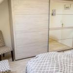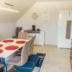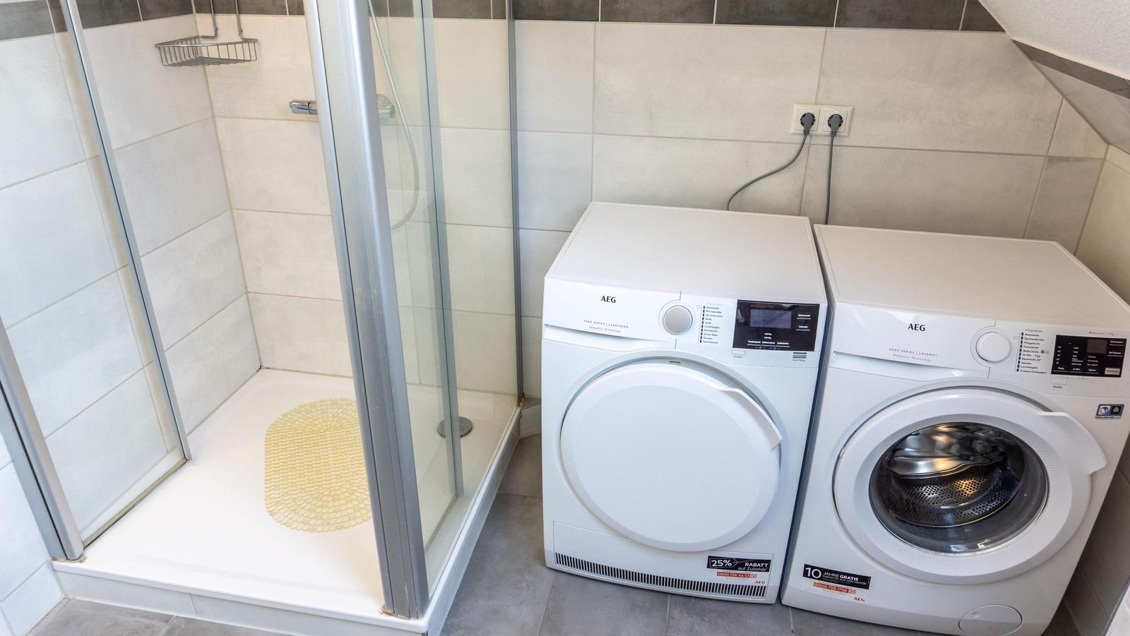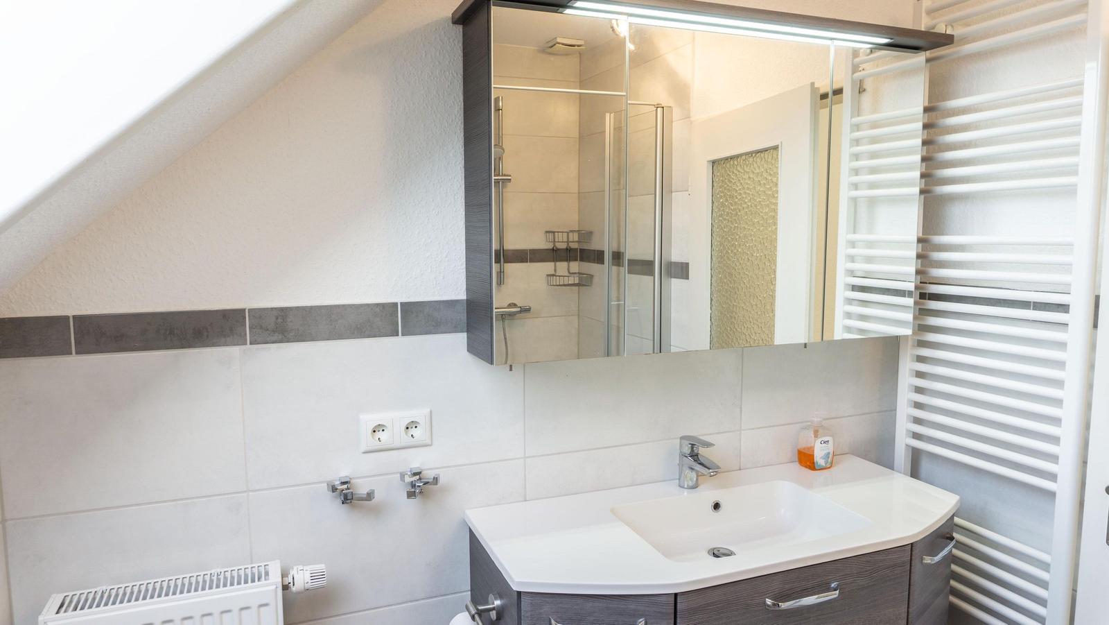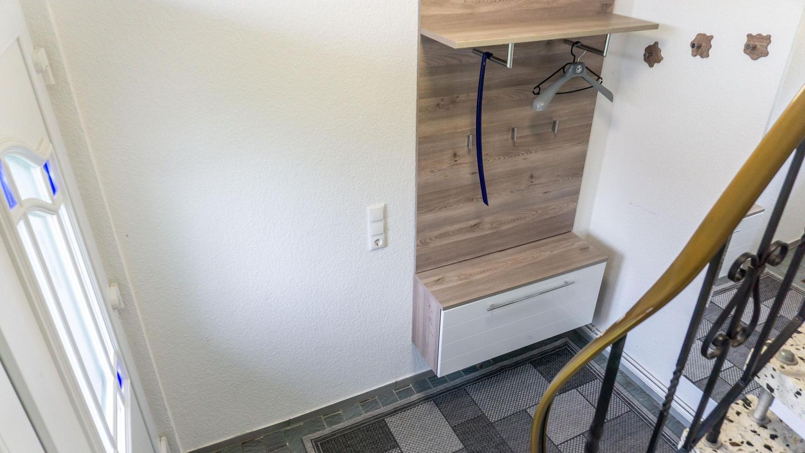 Die Ferienwohnung „Bi Moni un Willi“ bietet auf 75 m² ausreichend Platz für bis zu sechs Personen und ist ideal für Familien und Paare. Die Wohnung verfügt über drei separate Schlafzimmer, darunter ein Einzelzimmer, das über ein weiteres Schlafzimmer zugänglich ist. Der Wohnbereich ist ausgestattet mit einer gemütlichen Sofaecke und einem über 55 Zoll großen Fernseher. Die geschlossene Küche beinhaltet einen Esstisch sowie eine umfassende Ausstattung, darunter Ceranherd, Backofen, Kühlschrank mit Gefrierfach, Mikrowelle und Spülmaschine. Das moderne Badezimmer bietet eine bodengleiche Dusche und ist mit einem Haartrockner sowie einem Fenster für Tageslicht ausgestattet. WLAN, eine Waschmaschine und ein Trockner stehen zur Verfügung. Ein Safe im Schlafzimmer und verschiedene Haushaltsgeräte sorgen für zusätzlichen Komfort. Ein Privatparkplatz befindet sich direkt am Haus.