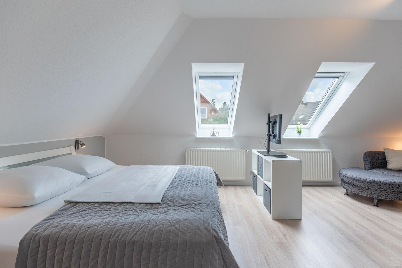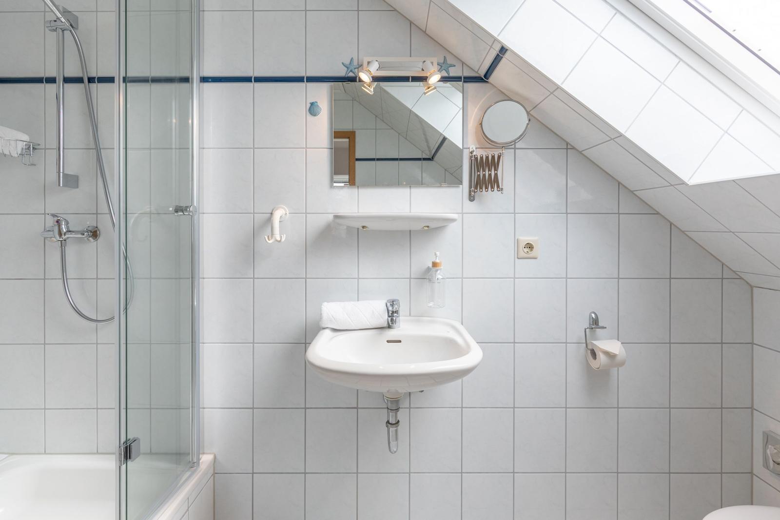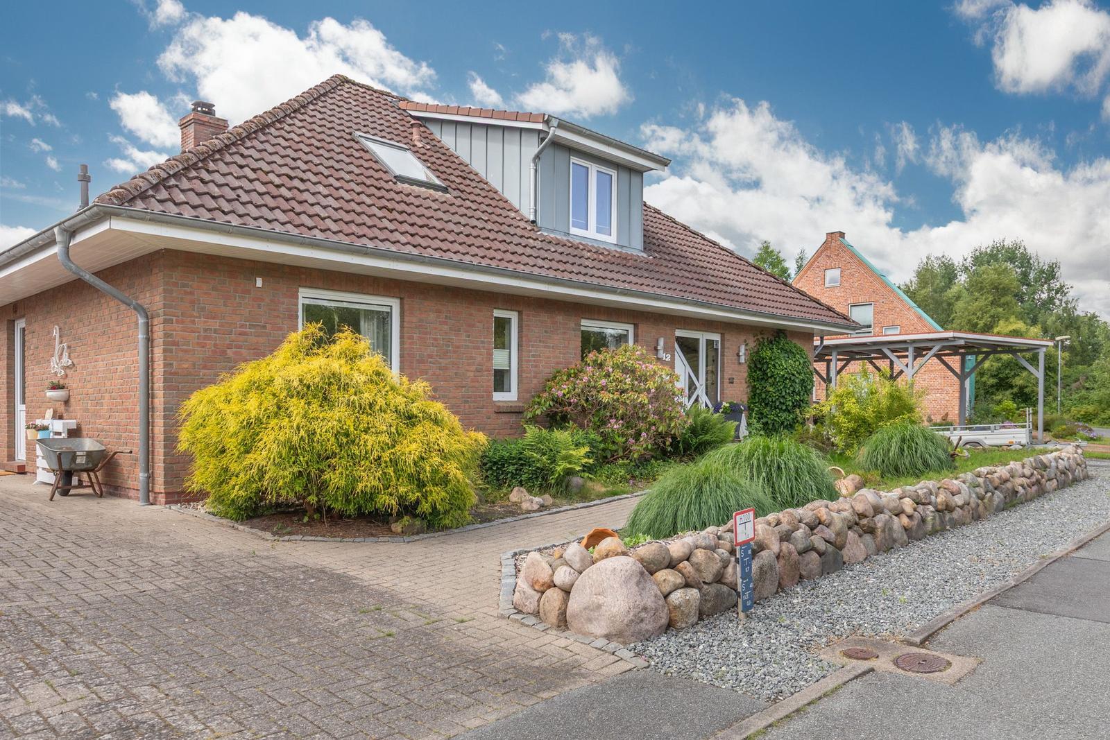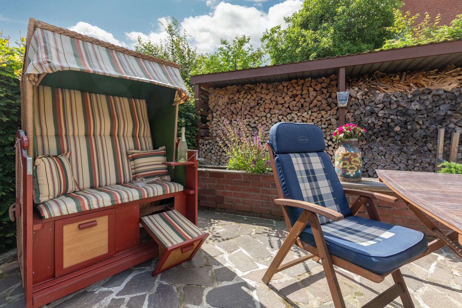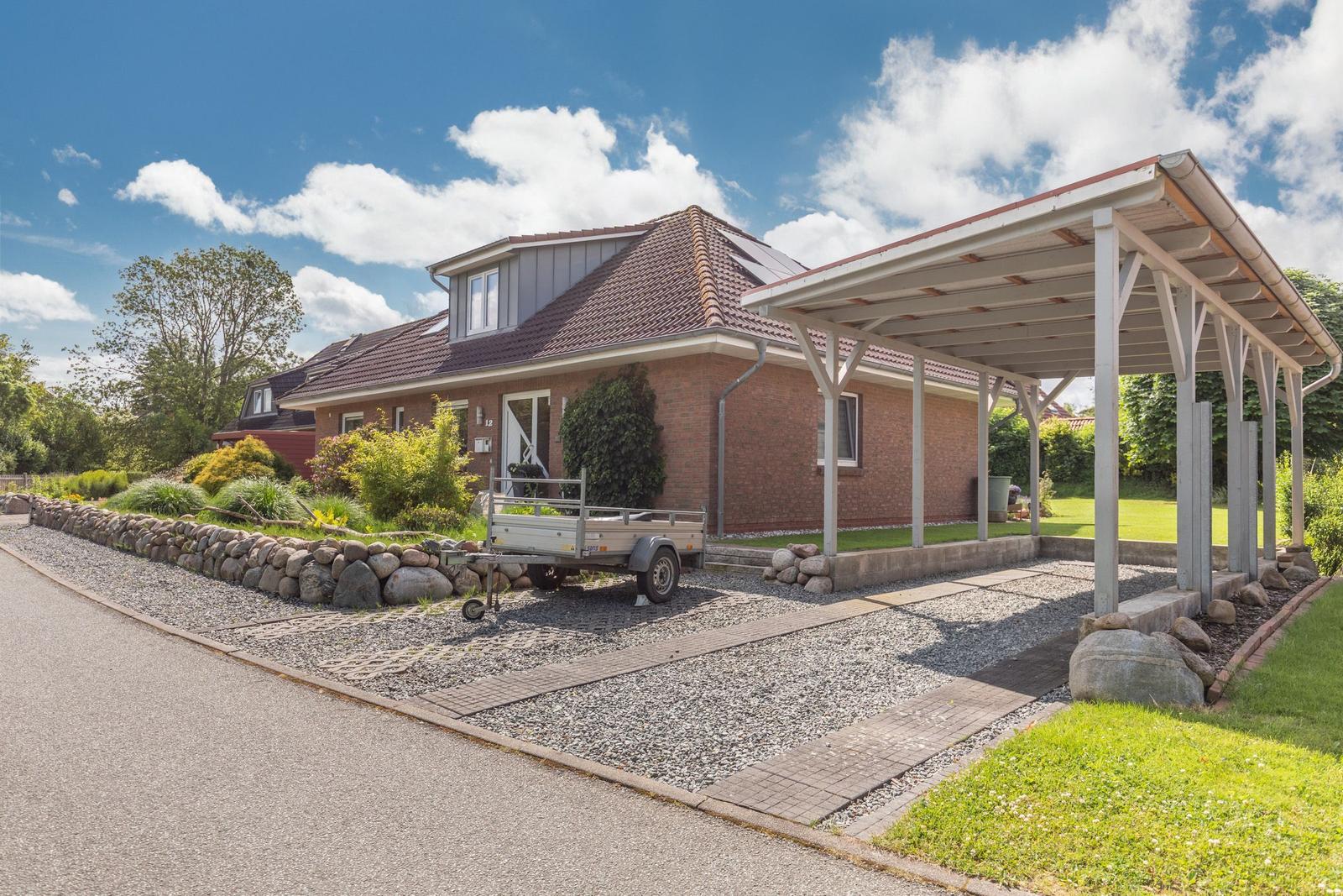 Die Ferienwohnung "Süden" in Hattstedt bietet einen einladenden Außenbereich, der zur gemeinschaftlichen Nutzung mit der benachbarten Ferienwohnung "Norden" zur Verfügung steht. Eine private Terrasse wartet mit gemütlichen Gartenmöbeln und einem Sonnenschirm auf, perfekt für entspannte Stunden im Freien. Ein Strandkorb lädt zum Verweilen ein, während der weitläufige Garten ausreichend Platz für Erholung bietet. Bei warmen Sommertagen sorgt ein Kohlegrill für kulinarische Abwechslung, unterstützt von einer praktischen Außendusche. Der Außenbereich ist ideal, um die Ruhe des ländlichen Ambientes zu genießen und gleichzeitig die Nähe zur Nordsee, die lediglich 3.000 Meter entfernt ist, zu nutzen. Ein Parkplatz direkt vor dem Haus steht ebenfalls zur Verfügung, was den Aufenthalt zusätzlich erleichtert.