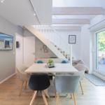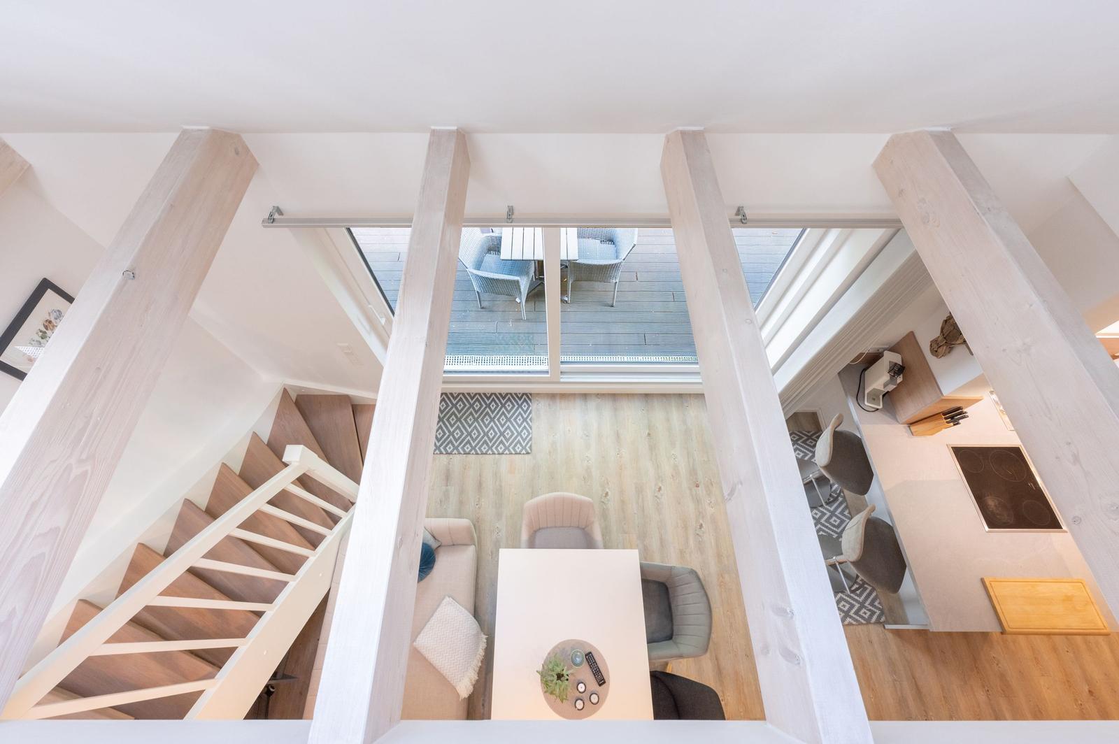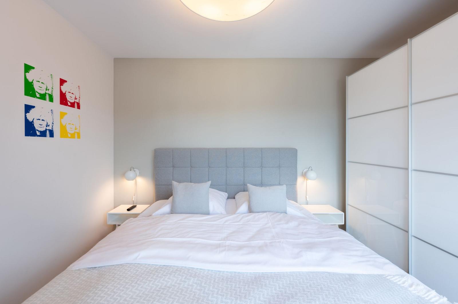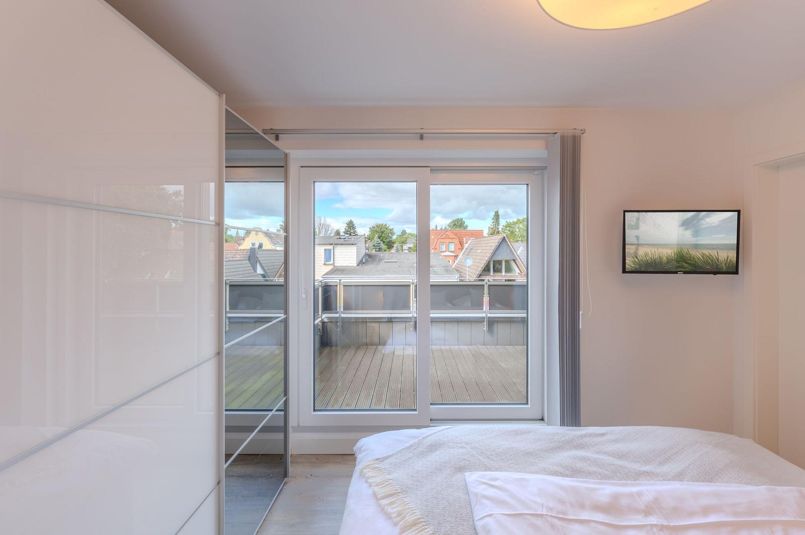 Die Ferienwohnung bietet ein modernes, helles Ambiente mit durchdachter Raumaufteilung. Sie verfügt über ein komfortables Schlafzimmer mit einem Doppelbett und einem Einzelbett, ideal für Familien oder Paare. Die offene Küche ist mit einem Elektro-/Gasherd, Geschirrspüler, Backofen, Mikrowelle, Kühlschrank und Kaffeemaschine ausgestattet. Ein Kinderhochstuhl, Toaster und Mixer stehen ebenfalls bereit, um den Aufenthalt angenehm zu gestalten.