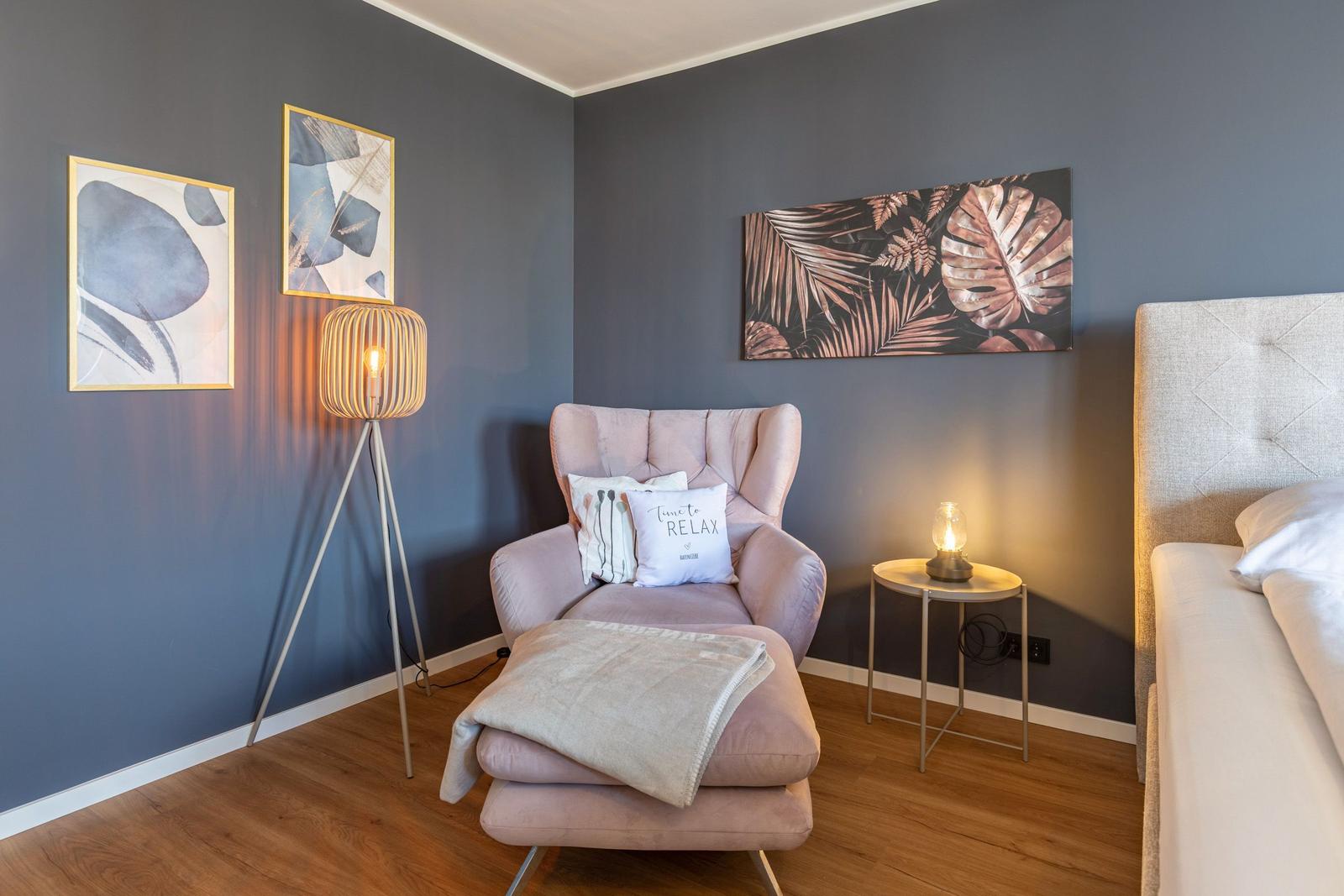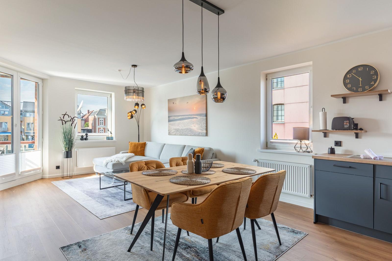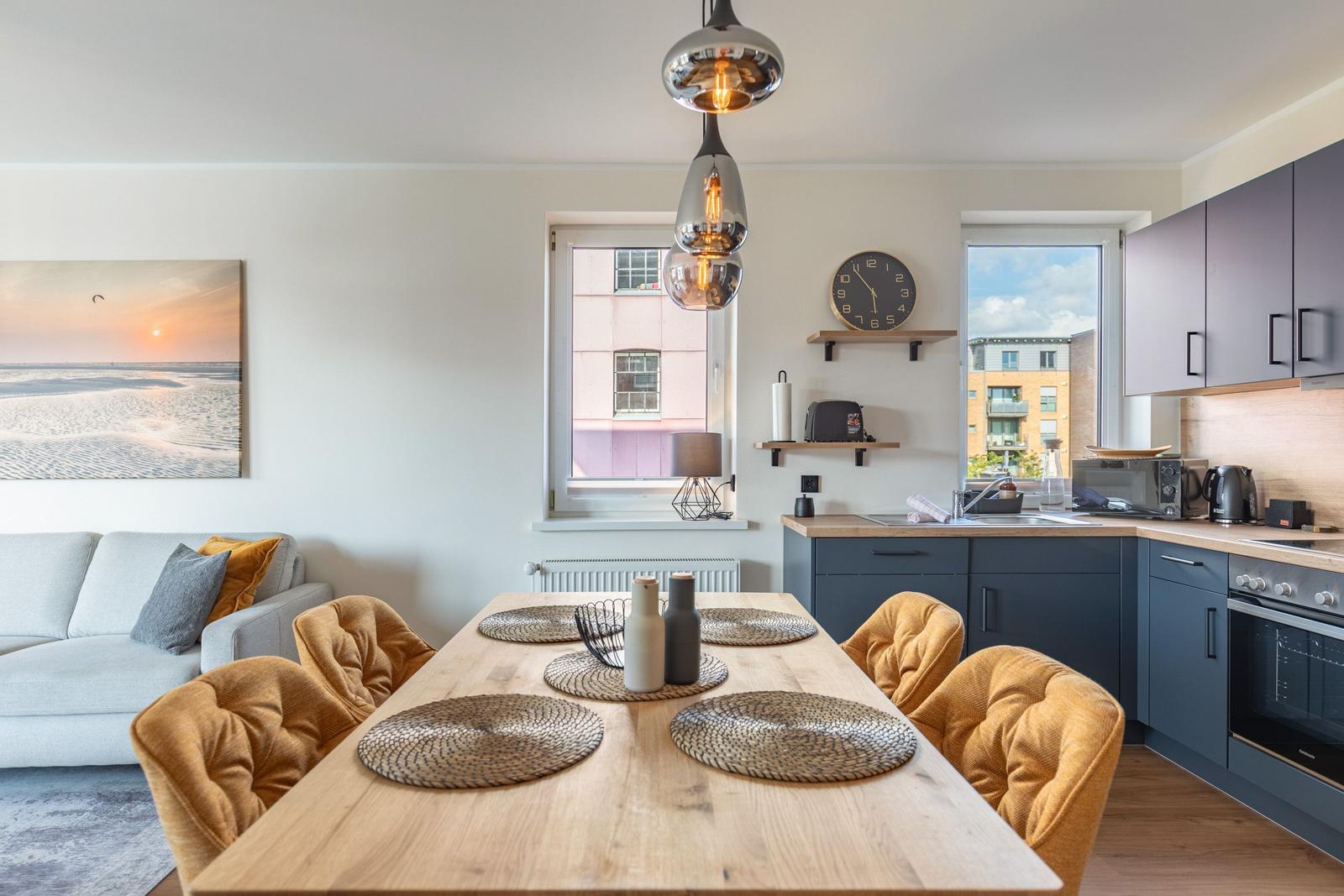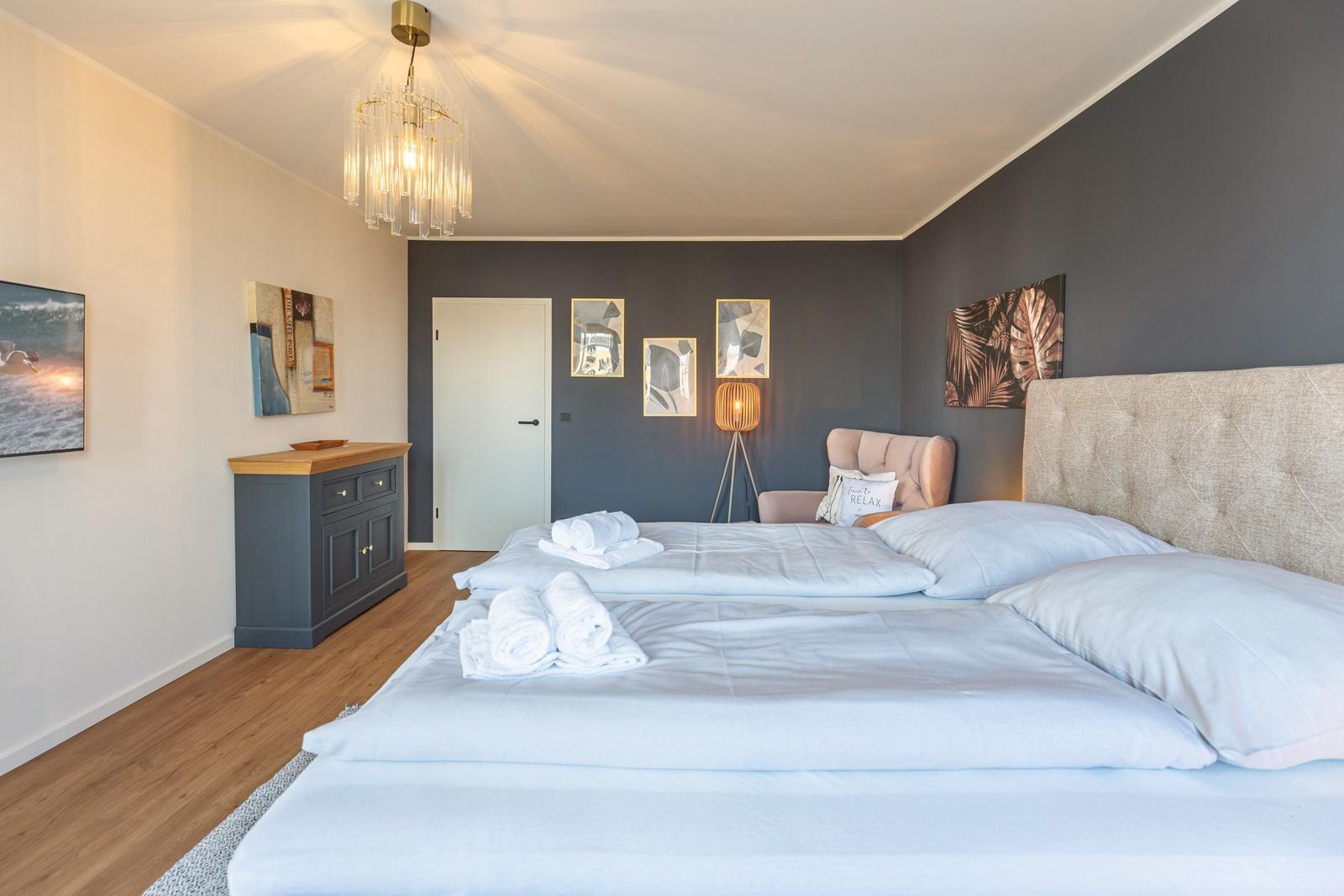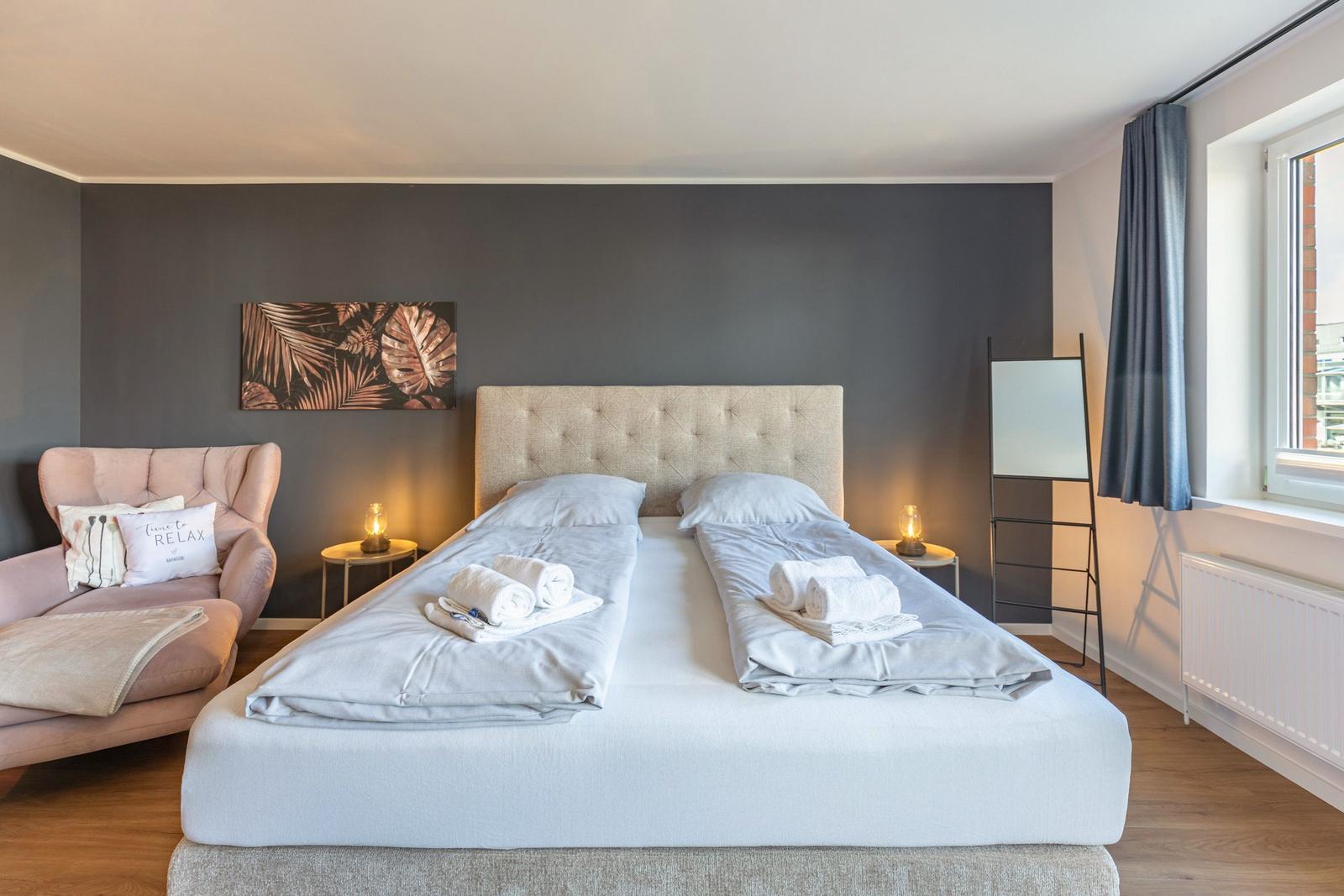 Diese ansprechend gestaltete Ferienwohnung bietet eine komfortable und entspannende Unterkunft für bis zu vier Personen. Sie verfügt über zwei einladende Schlafzimmer mit je einem Doppelbett, die Ruhe und Erholung garantieren. Die offene Küche ist modern ausgestattet und umfasst einen Elektro-/Gasherd, Backofen, Mikrowelle, Kühlschrank, Geschirrspüler und eine Kaffeemaschine. Die Wohnbereiche laden mit einem gemütlichen Sofa, einem Sessel und einem Esstisch zum Verweilen ein. Das Duschbad ist mit einem Haartrockner und einem Kosmetikspiegel ausgestattet. WLAN steht kostenlos zur Verfügung, ebenso wie ein Parkplatz. Praktische Annehmlichkeiten wie Geschirrtücher, Gewürze im Starterset und ein Staubsauger runden das Angebot ab. Die Heizung sorgt für eine angenehme Temperatur, während Rauchmelder für Sicherheit sorgen. Diese Ferienwohnung ist der ideale Rückzugsort für einen entspannten Urlaub.