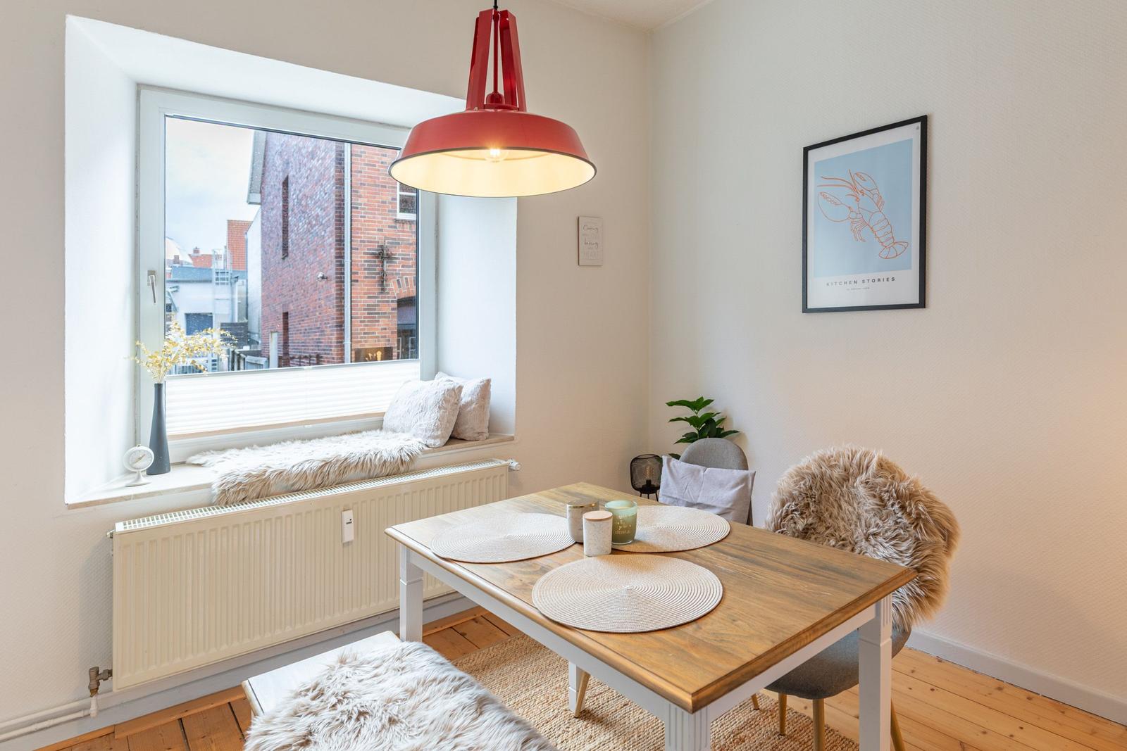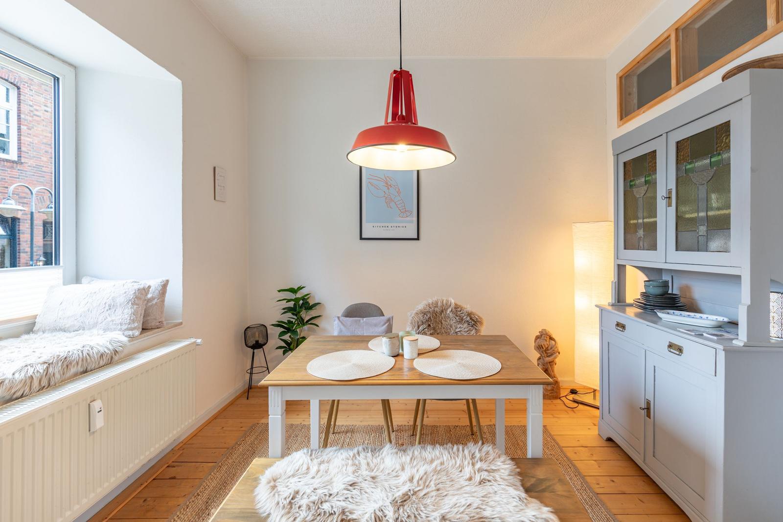 Das historische Haus in der Rosenstraße, in dem sich die Wohnung befindet, ist umgeben von kulturellen Schätzen, darunter das Schloss und der Schlosspark. Radfahrer haben in wenigen Minuten Zugang zum Dockkoog und zum idyllischen Luftkurort Schobüll. Ob für einen romantischen Ausblick oder gesellige Stunden – der Außenbereich bietet eine gelungene Ergänzung zu einem unvergesslichen Aufenthalt. Haustiere sind willkommen, was den Aufenthalt für Urlauber mit vierbeinigen Begleitern besonders einladend macht.