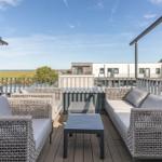 Die Ferienwohnung Penthouse Halligblick de Luxe liegt auf Nordstrand, nur etwa 150 Meter vom Meer entfernt und bietet einen atemberaubenden Panoramablick auf die Nordsee und die Halligen. In der unmittelbaren Umgebung laden malerische Spaziergänge und Radtouren ein. Ein Angelsee, nur hinter dem Haus, bietet Angelfreunden die Möglichkeit, verschiedenste Fischarten zu fangen. Gemütliche Restaurants sind ebenfalls in rund 150 Metern erreichbar, während Einkaufsmöglichkeiten ca. 4 Kilometer entfernt liegen. Der Fähr- und Ausflugshafen Strucklahnungshörn ermöglicht schnellere Verbindungen zu den Inseln Amrum, Föhr und Sylt sowie zur Nachbarinsel Pellworm. Die Anreise gestaltet sich durch den eigenen Parkplatz und einen Aufzug zum Penthouse bequem. Hier genießen die Gäste private Wellnessstunden mit einer Dampfbad-Sauna und einen unvergleichlichen Ausblick auf das Meer – ideale Voraussetzungen für entspannende Urlaubstage.