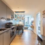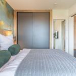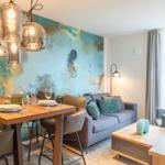 Der Außenbereich der Ferienwohnung Küstenbrise de Luxe auf Nordstrand bietet einen entspannenden Rückzugsort. Direkt hinter dem Haus befindet sich ein idyllischer Angelsee, umgeben von einer malerischen Landschaft. Der See eignet sich ideal für Angler aller Erfahrungsstufen und ist mit einer Fläche von 2,9 Hektar reich an verschiedenen Fischarten wie Forellen und Zander. Gäste können zudem den komfortablen Balkon der Wohnung nutzen, der mit bequemen Gartenmöbeln ausgestattet ist, und die frische Nordseeluft genießen. Die Lage umfasst auch die Möglichkeit, innerhalb von 150 Metern gemütliche Restaurants zu erreichen. Für aktive Erholungssuchende bieten sich vielseitige Spaziergänge und Radtouren in der Umgebung an. Ein kostenfreier Parkplatz steht direkt am Haus zur Verfügung.