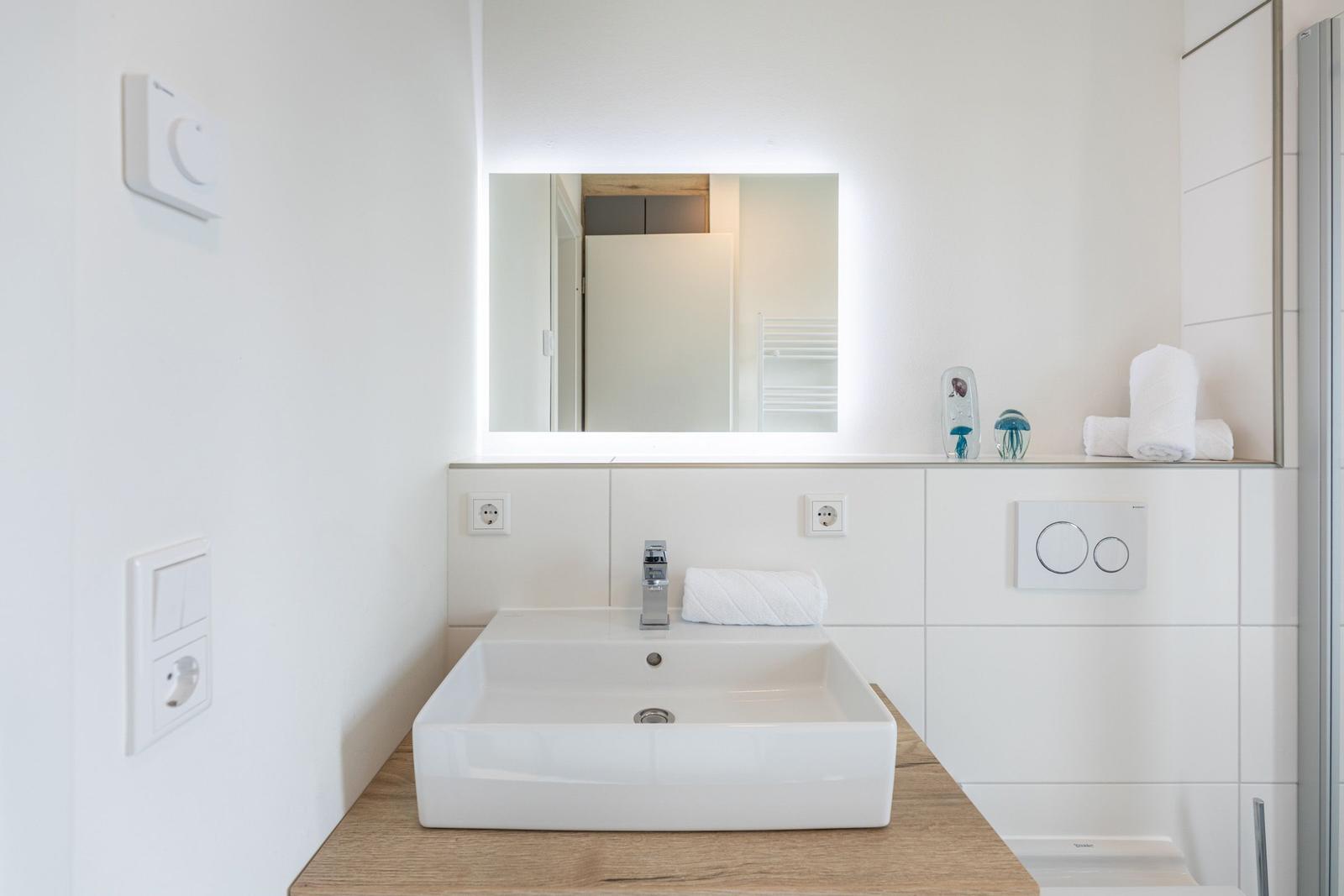 Die Ferienwohnung Hallighafen de Luxe liegt in bester Lage auf Nordstrand, nur etwa 150 Meter vom Meer entfernt. Die Umgebung besticht durch maritimen Charme und ländliche Gelassenheit, ideal für entspannende Spaziergänge, Radtouren und spannende Ausflüge. In der Nähe befinden sich gemütliche Restaurants, die in rund 150 Metern erreicht werden können, während Einkaufsmöglichkeiten etwa 4 Kilometer entfernt sind. Der Fähr- und Ausflugshafen Strucklahnungshörn ist ebenfalls in wenigen Minuten zu erreichen, von wo aus tägliche Verbindungen zu den nahegelegenen Inseln Amrum, Föhr und Sylt sowie nach Pellworm bestehen. Ein Angelsee hinter dem Haus bietet Freizeitmöglichkeiten für Angler aller Erfahrungsstufen. Die Anreise zur Unterkunft gestaltet sich unkompliziert, mit einem eigenen Parkplatz direkt vor dem Haus und einem Aufzug für den leichten Zugang zur Wohnung.