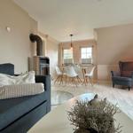 In dieser stilvollen Ferienwohnung erwartet die Gäste eine durchdachte Raumaufteilung und eine hochwertige Ausstattung. Das Schlafzimmer verfügt über ein bequemes Doppelbett, während das Wohnschlafzimmer mit einem weiteren Doppelbett ideal für entspannte Nächte ist. Die separate Küche ist komplett ausgestattet und bietet mit einem Geschirrspüler, einem Elektro-/Gasherd, einem Backofen und einem Kühlschrank alle Annehmlichkeiten für die Zubereitung köstlicher Mahlzeiten. Zusätzlich stehen eine Kaffeemaschine, ein Toaster und ein Wasserkocher bereit. Das moderne Duschbad, ausgestattet mit einem Haartrockner, rundet den Komfort ab. Ein Kamin oder Kachelofen sorgt für wohlige Wärme an kalten Tagen. WLAN ist ebenfalls vorhanden, sodass Gäste auch während ihres Aufenthalts online bleiben können. Die Wohnung ist allergikergeeignet und bietet eine gemütliche, einladende Atmosphäre für erholsame Tage.