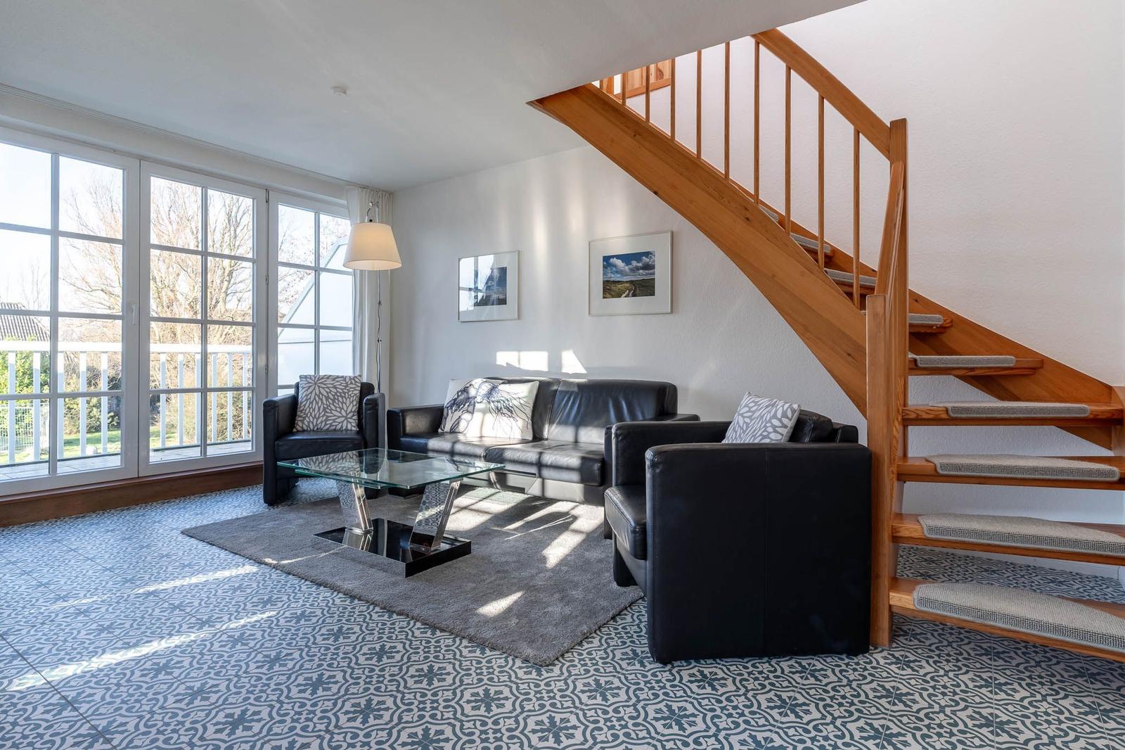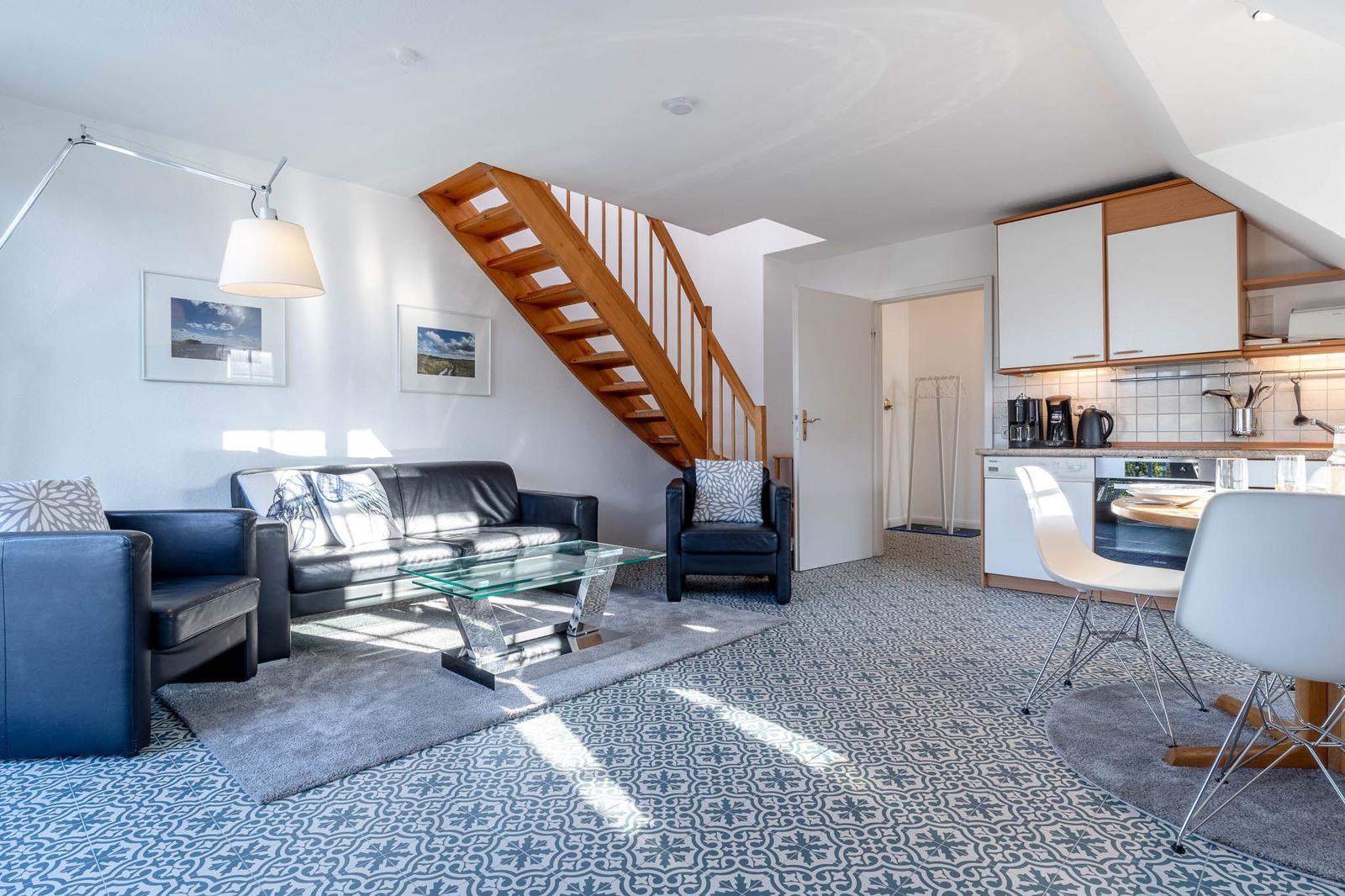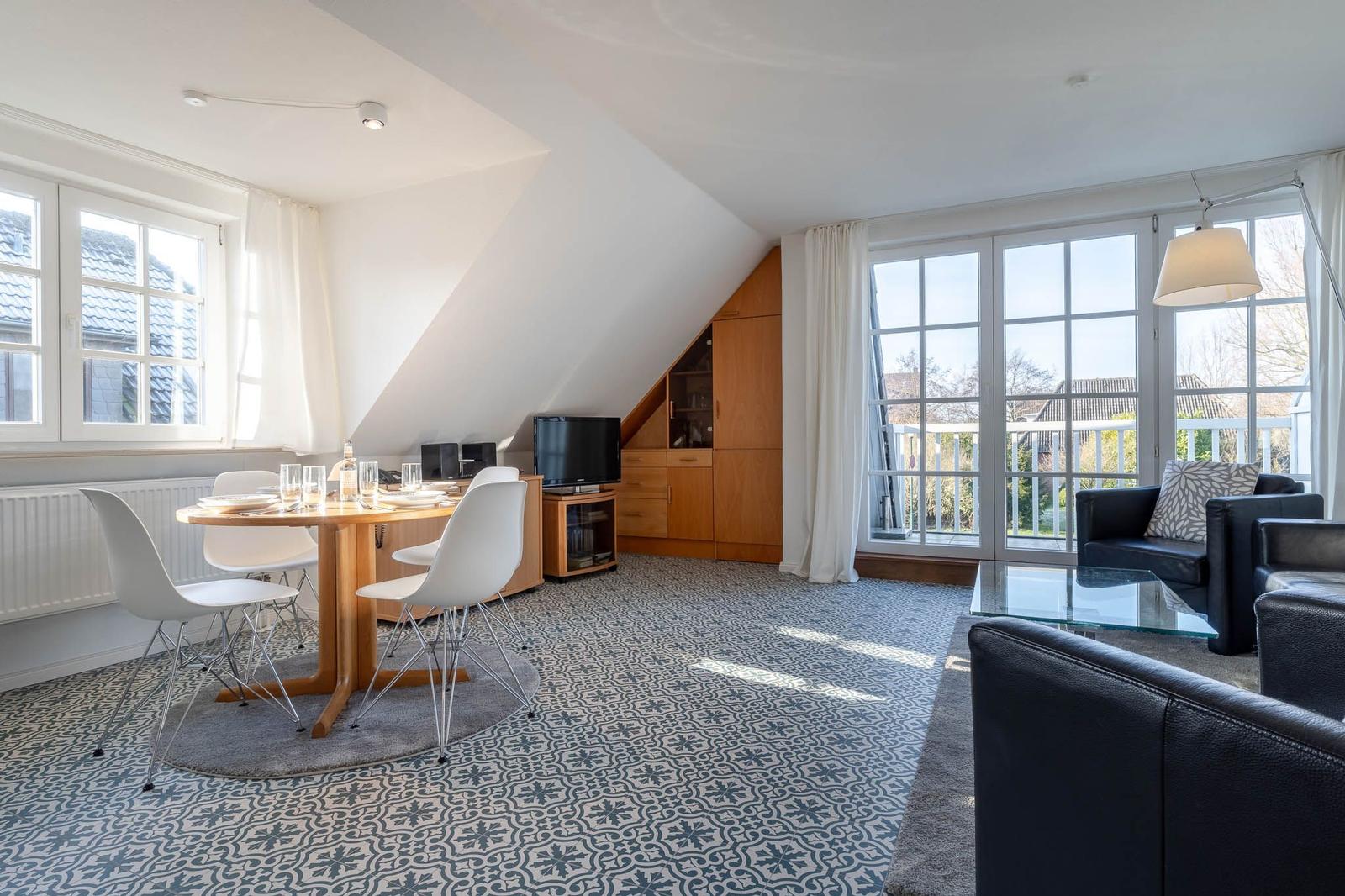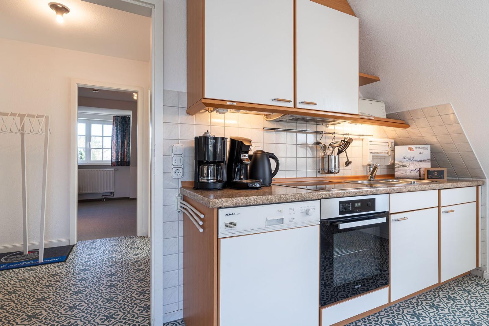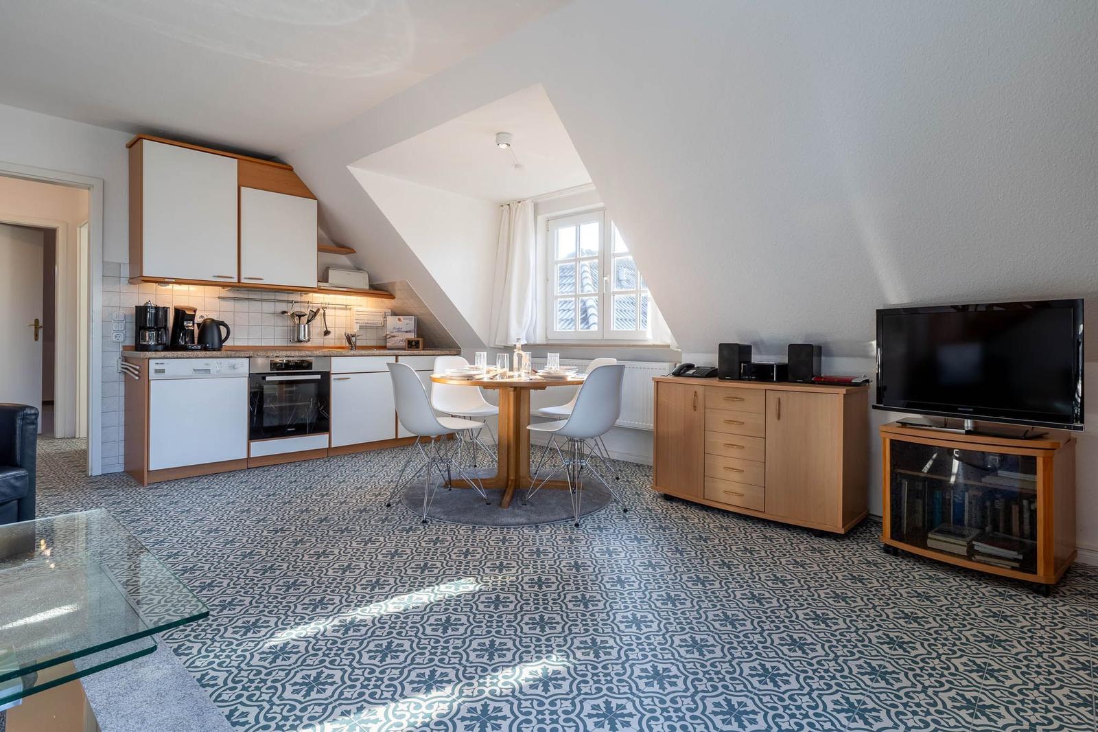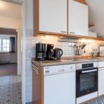 Die Ferienwohnung bietet eine ansprechende Atmosphäre mit durchdachter Raumaufteilung. Zwei Schlafzimmer, darunter ein Doppelbett und zwei Einzelbetten, gewährleisten erholsame Nächte. Die offene Küche ist voll ausgestattet mit einem Elektro-/Gasherd, Backofen, Geschirrspüler und Kühlschrank, ideal für die Zubereitung köstlicher Mahlzeiten. Sie finden zusätzlich eine Kaffeemaschine, einen Toaster und eine Gefriermöglichkeit vor. Das moderne Duschbad mit Fenster sorgt für ein angenehmes Ambiente. Ein geräumiges Wohnzimmer mit Sofa, Sessel und einem Esstisch lädt zu geselligen Abenden ein und verfügt über eine HiFi-Anlage sowie einen TV für entspannte Stunden. Zur Ausstattung zählen auch Internet mit WLAN, Praktisches wie Waschmaschine, Wäschetrockner und Staubsauger sowie ein Parkplatz. Die Wohnung ist allergikerfreundlich und bietet alles, was für einen komfortablen Aufenthalt benötigt wird.