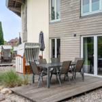 Die Ferienwohnung bietet einen geräumigen und einladenden Rückzugsort mit vier Schlafräumen, die jeweils mit einem Doppelbett ausgestattet sind. Die offene Küche ist modern und vollständig eingerichtet, inklusive Geschirrspüler, Elektro-/Gasherd, Backofen, Kühlschrank und Kaffeemaschine. Zusätzliche Annehmlichkeiten wie Toaster, Wasserkocher und Gefriermöglichkeit runden die Küchenausstattung ab.