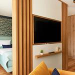 Die Ferienwohnung bietet ein stilvolles und komfortables Ambiente, ideal für einen erholsamen Aufenthalt. Sie verfügt über ein Schlafzimmer mit einem gemütlichen Doppelbett sowie ein Wohnschlafzimmer, das mit einem Sofa und Sessel ausgestattet ist. Die offene Küche überzeugt mit modernen Geräten wie einem Elektro-/Gasherd, Backofen, Geschirrspüler, Kühlschrank und Kaffeemaschine. Der Esstisch lädt zu geselligen Mahlzeiten ein. Ein Duschbad mit bodengleicher Dusche, Haartrockner und Kosmetikspiegel sorgt für höchsten Komfort. Zur weiteren Ausstattung gehören WLAN-Internet, eine HiFi-Anlage, TV und eine Fußbodenheizung. Die Wohnung ist allergikergeeignet und bietet einen Parkplatz sowie eine Garderobe für zusätzlichen Komfort. Rauchmelder und Staubsauger runden das Angebot ab. Diese Wohnung ist der perfekte Rückzugsort für einen angenehmen Urlaub.