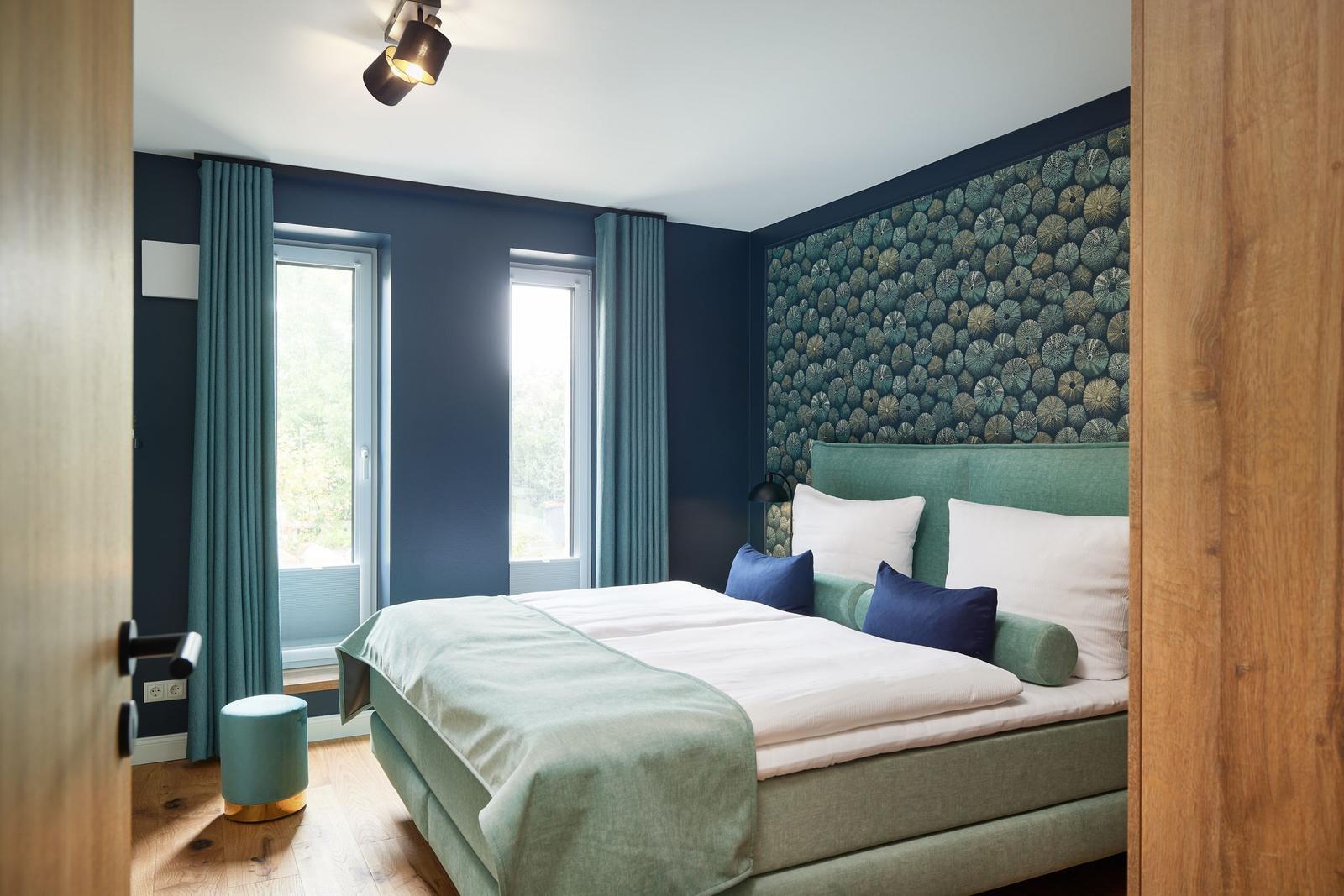 Die Ferienwohnung bietet eine moderne und allergikergeeignete Umgebung, die höchsten Komfort verspricht. Sie verfügt über zwei Schlafzimmer mit jeweils einem Doppelbett, ideal für erholsame Nächte. Die offene Küche ist vollständig ausgestattet und enthält einen Geschirrspüler, Elektro-/Gasherd, Backofen, Kühlschrank, Kaffeemaschine, Toaster und eine Gefriermöglichkeit. Ein Esstisch lädt zur gemeinsamen Mahlzeit ein.