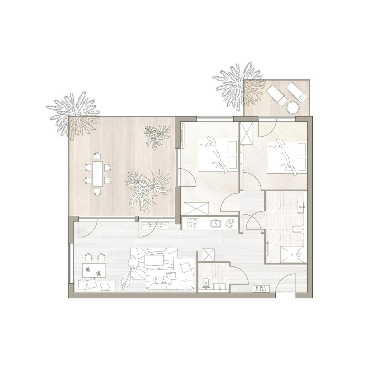 Im Binnendiek Resort Haus 2, Wohnung 12, steht eine großzügige, möblierte Dachterrasse in Nord-West/Nord-Ost-Lage zur Verfügung. Diese bietet ausreichend Raum für entspannte Momente im Freien und ist der ideale Rückzugsort für die Gäste. Zudem sind die gemeinschaftlichen Bereiche des Resorts ein Highlight: ein moderner Wellnessbereich mit finnischer und Infrarot-Sauna, verschiedenen Fußbädern sowie einem Ruheraum, der kostenfrei genutzt werden kann. Fahrräder können sicher abgestellt werden, und es besteht die Möglichkeit, eine gemeinschaftliche Waschmaschine zu nutzen. Für eine bequeme Anreise sorgt die Tiefgarage, die gegen Aufpreis zur Verfügung steht. WLAN ist im gesamten Resort kostenfrei nutzbar. Das Binnendiek Resort lädt dazu ein, abzuschalten und die Seele baumeln zu lassen.