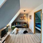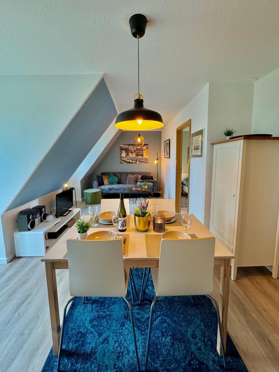Die Ferienwohnung bietet ein einladendes Ambiente und ist ideal für Allergiker geeignet. Sie verfügt über zwei komfortable Schlafzimmer, darunter ein romantisches Doppelbett und eine praktische Schlafcouch im Wohnschlafzimmer. Die moderne Küchenzeile ist mit einem Elektro- und Gasherd, Backofen, Mikrowelle und Kühlschrank ausgestattet, ergänzt durch eine Kaffeemaschine, einen Toaster sowie Geschirr und Besteck, um das Kochen zu einem Vergnügen zu machen. Im stilvollen Badezimmer mit Fenster steht eine Dusche zur Verfügung, begleitet von einem Spiegel. Für entspannende Abende lädt der TV im Wohnbereich ein. Ein Esstisch rundet das gemütliche Ambiente ab. Ein Parkplatz ist ebenfalls vorhanden, und eine Waschmaschine sowie Geschirrtücher sind inklusive. Sicherheit wird durch einen Rauchmelder gewährleistet. Diese Ferienwohnung ist der perfekte Rückzugsort für erholsame Tage.