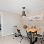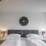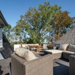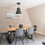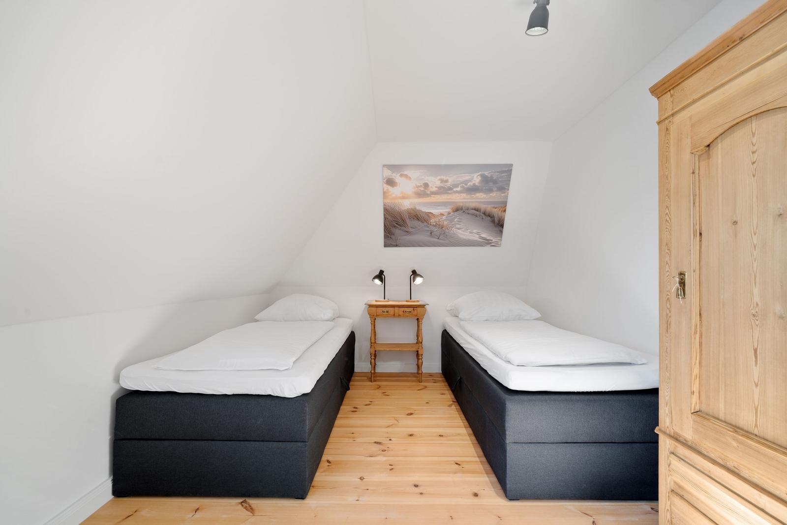 Der Tofthof söss ist eine moderne Ferienwohnung auf dem historischen Tofthof und bietet ca. 60 m² Platz für 1 bis 5 Personen. Der großzügige Wohnraum ist mit einem TV ausgestattet und bietet direkten Zugang zur Dachterrasse. Die voll ausgestattete Küche schließt direkt an einen offenen Wohn- und Essbereich an. Die Ferienwohnung umfasst ein separates Duschbad sowie zwei Schlafzimmer: eines mit einem Boxspringbett (1,8 x 2,0 m) und ein weiteres mit zwei Einzelbetten (0,9 x 2,0 m). Zusätzlich gibt es ein kleines Zimmer mit einer Ausziehcouch, die nur für Kinder geeignet ist. Die Dachterrasse ist mit hochwertigen Gartenmöbeln ausgestattet und eignet sich perfekt zum Entspannen. Maximal ein Haustier ist willkommen. Gemeinschaftliche Ausstattungen sollten nicht erwähnt werden.