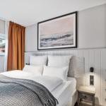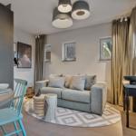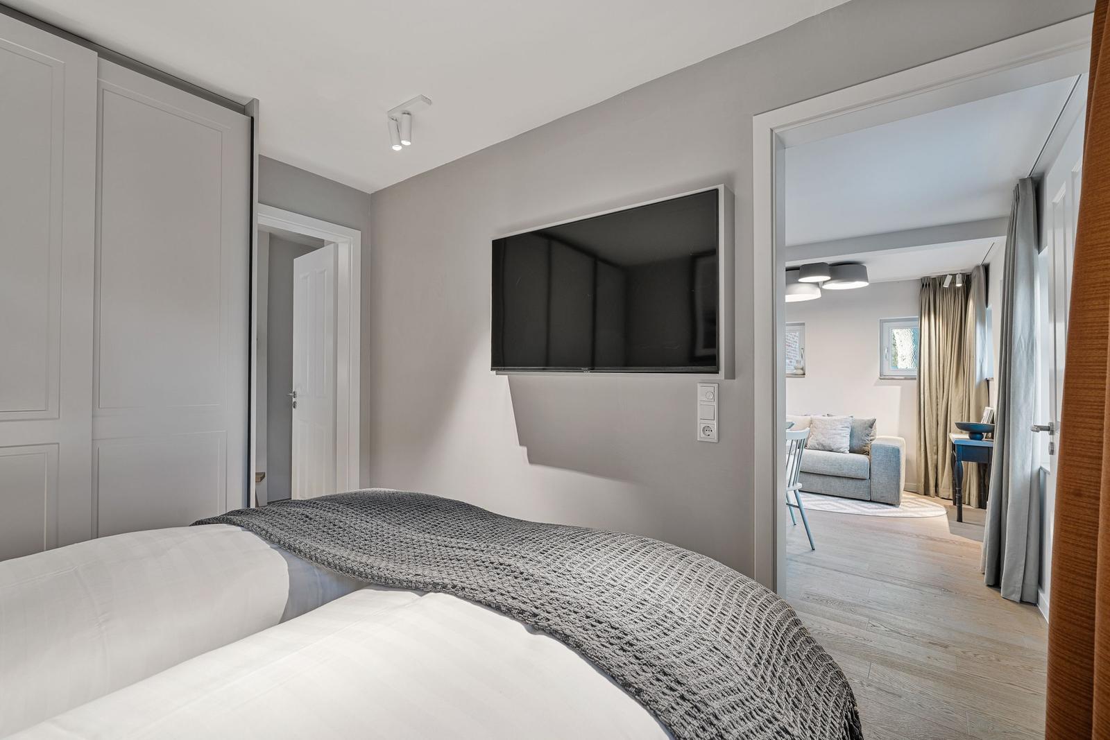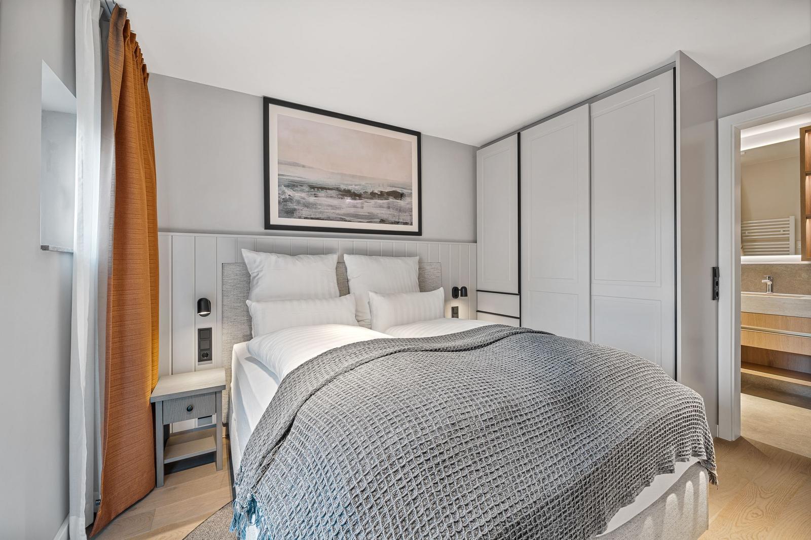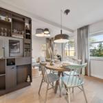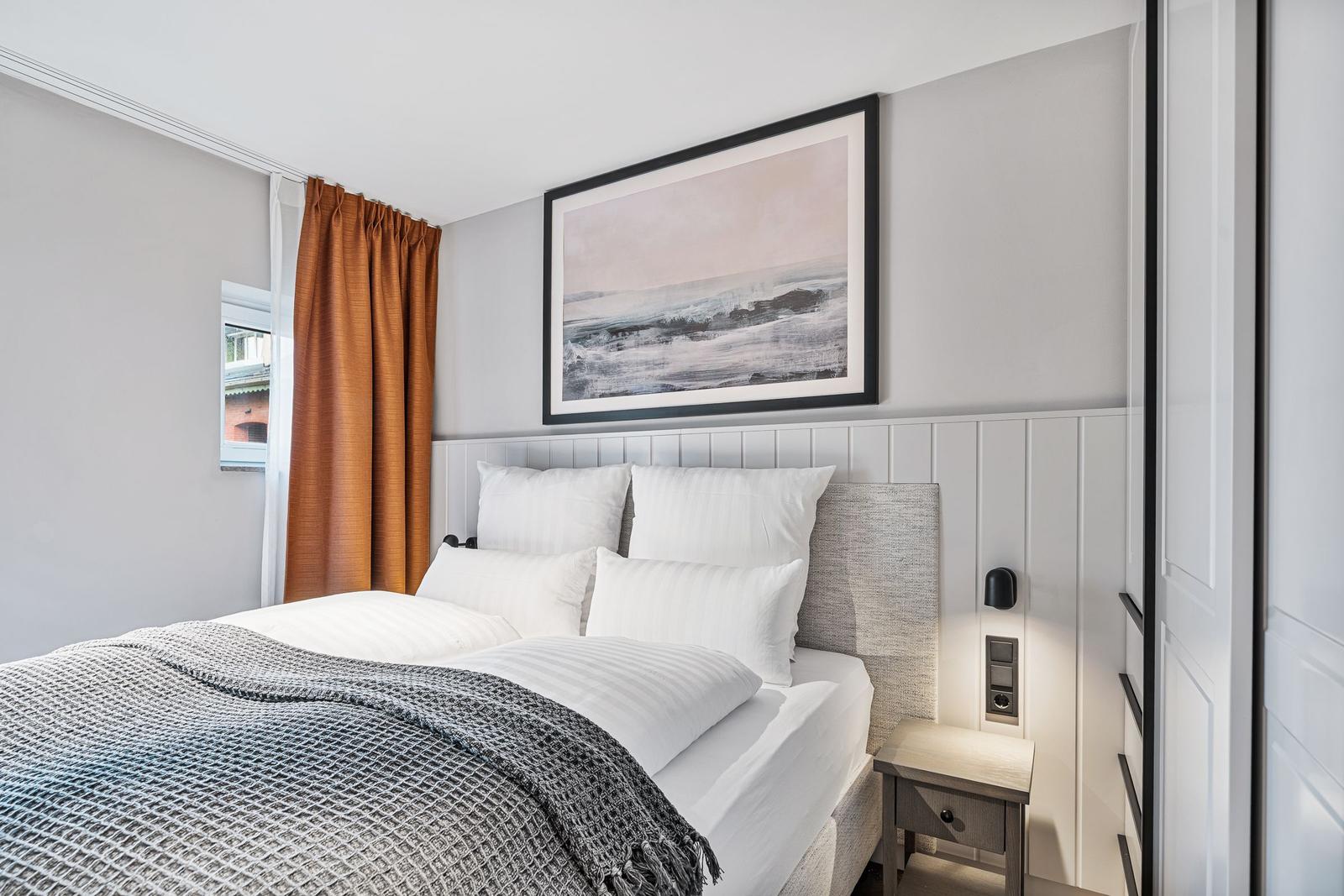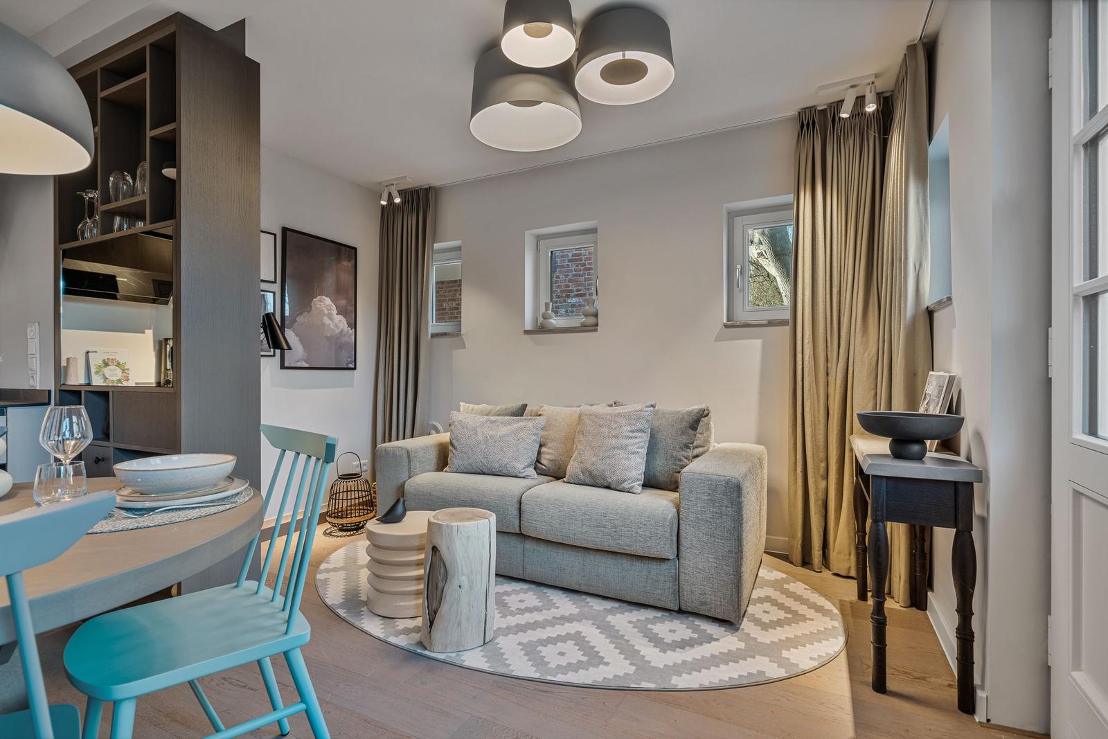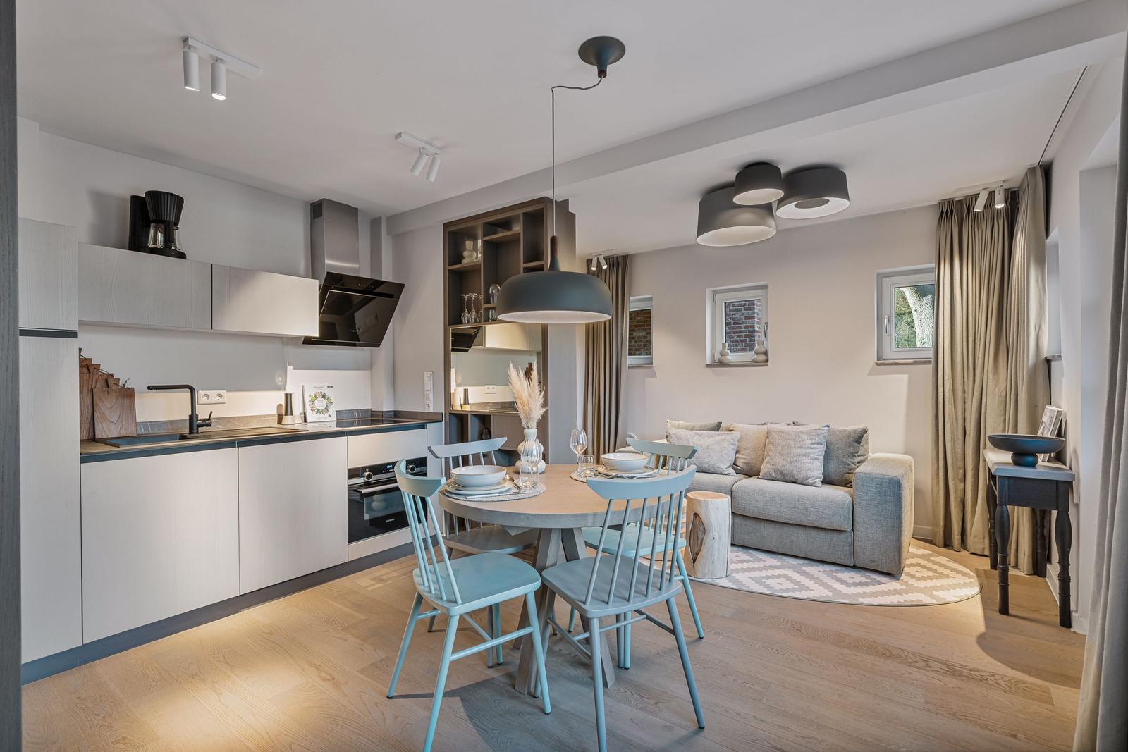 Das Traumdomizil Westerhever ist eine luxuriöse Ferienwohnung mit 40 m², die für bis zu 2 Personen ausgelegt ist. Sie verfügt über ein hochwertiges Schlafzimmer mit einem Boxspringbett (180 x 200 cm) und einem eleganten Badezimmer mit Dusche. Die offene Küche ist voll ausgestattet, inklusive Induktionsherd, Backofen, Spülmaschine und Kaffeemaschine. Der helle Wohnbereich bietet zwei TV-Geräte und eine gemütliche Atmosphäre. Fußbodenheizung sorgt für wohlige Wärme, während Sichtschutz an den Fenstern Privatsphäre garantiert. Auf dem Gelände befinden sich zudem ein gesondertes Fahrradhaus, zwei Fasssaunen, ein Fitnessstudio und ein Naturschwimmteich. Gemeinschaftlich nutzbare Bereiche ermöglichen das Entspannen und Erholen in der idyllischen Umgebung von Westerhever.